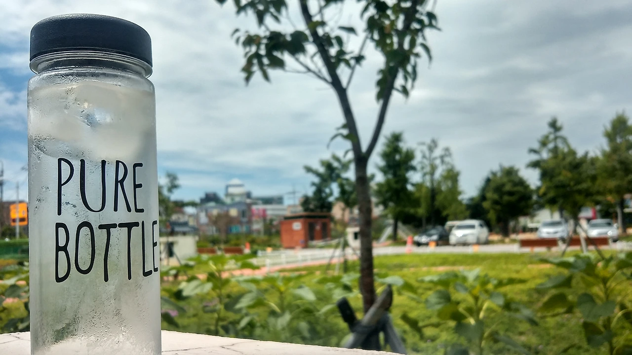 은행가 는데 들고 있던 보틀이 풍경과 어울릴 듯하여 한 장 찰칵 찍어봤습니다.