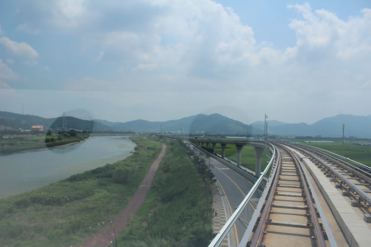 사실 저는 왕복권으로 끊었지만 도저히 다시 문학관역까지 걸어서 갈 자신이 없었기에 (열사병 증상..) 순천만 주차장에서 택시를 타고 시내로 이동했답니다. 참고로 순천만 주차장에서 역까지 8천 원 정도 나옵니다. 두 분이 큐브트레일을 타신다면 택시 왕복하시는 거랑 같습니다. 순천만으로 향하는 큐브트레일은 위에서 보는 모습과 아래에서 보는 모습이 너무나도 달랐습니다. 도로 한 차선을 아예 포기할 생각으로 그위에 지어진 다리를 보고 있자니 아쉽더라고요. 꼭 이랬어야 했나..