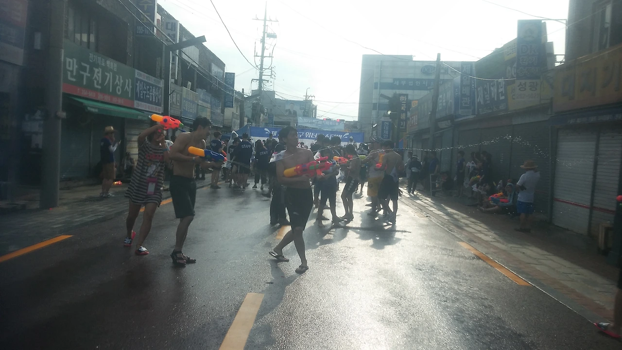 하지만 재미는 정말 있었습니다. 서로를 모르지만 더운 대구 날씨에 물을 뒤집으며 싸우니