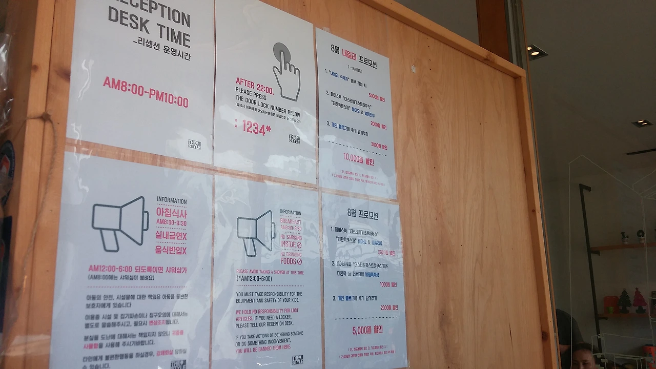 아쉬운 게 많았던 게스트하우스예요. 많은 인원이 한꺼번에 투숙해서 그런지