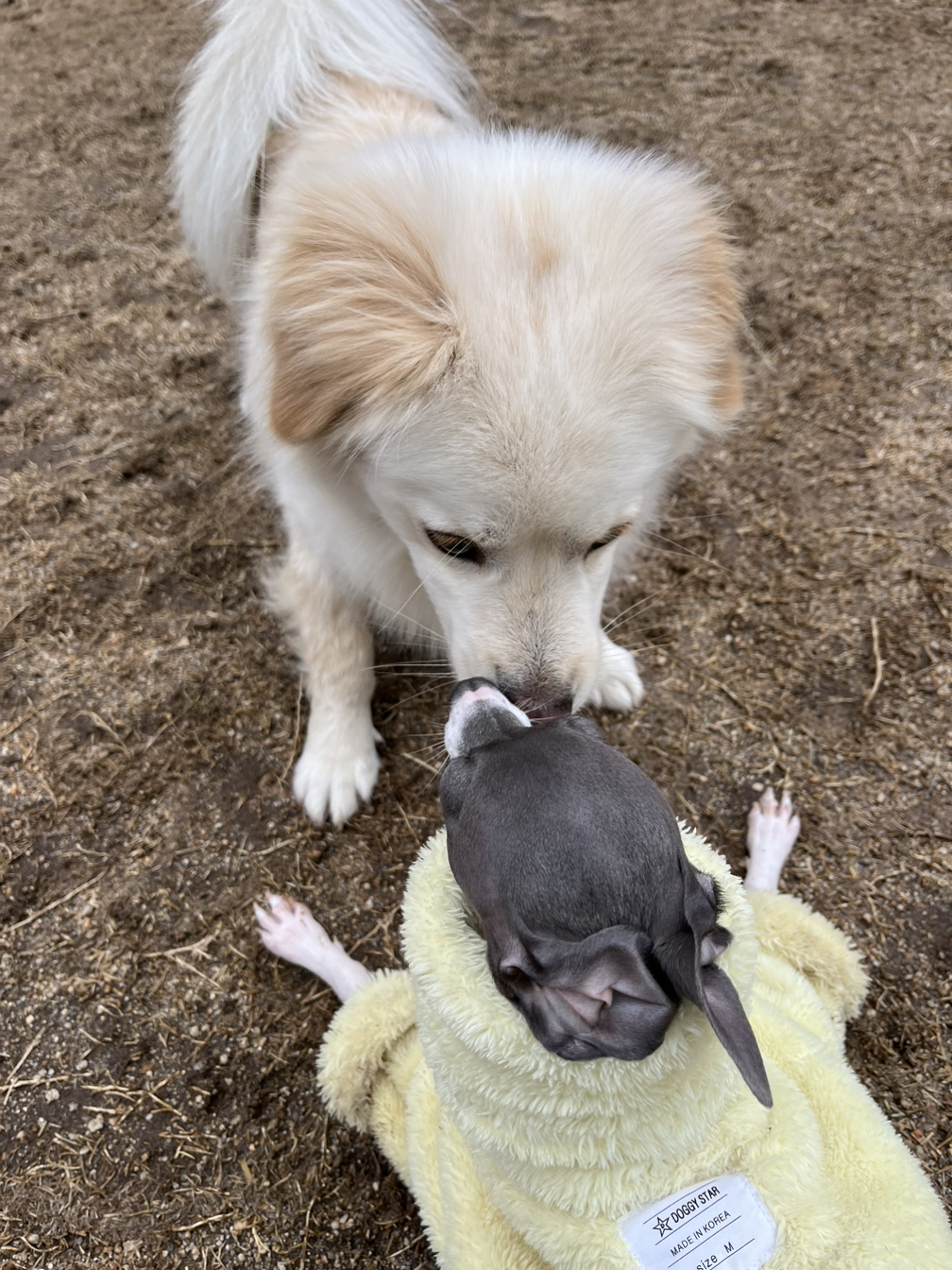 금동이는 사교성이 좋아서 애카(애견카페) 가면 잘 논다. 나름 귀여움도 많이 받는다. (다리가 짧아서 귀여워함)