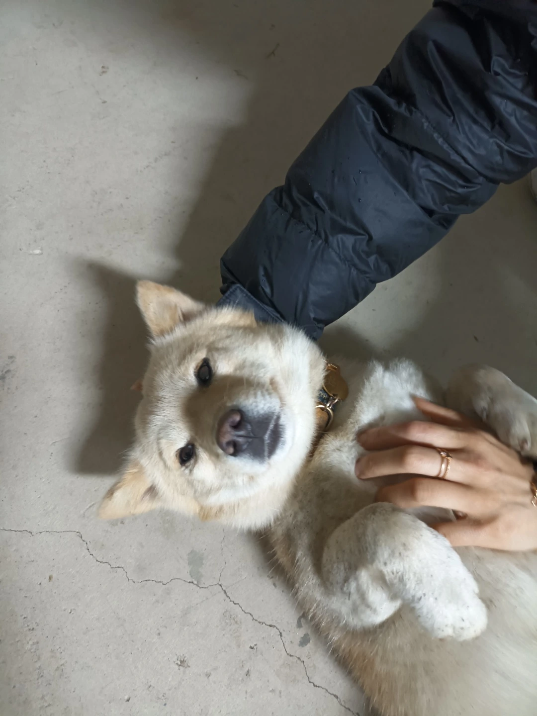 이미 3개월가량을 뒷집 뜬장에서 자란 탓인지 사람을 엄청 무서워합니다.