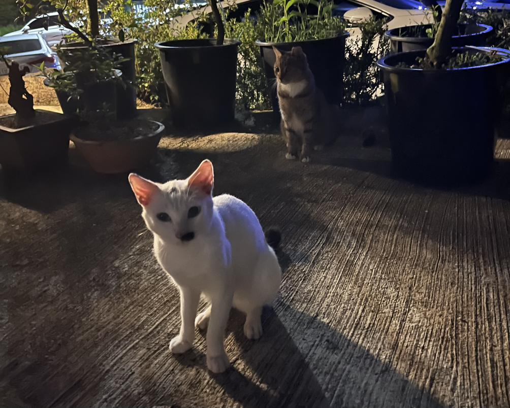 흰냥이는 아직 어린이인지, 집 마당 구석구석을