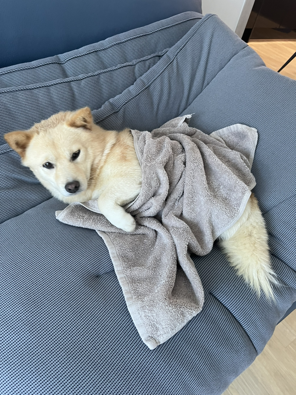 꼬미는 생각보다 목욕을 잘했고, 그 뒤로 용기가 생겼는지 현관문 앞에서 누워있는 일이 종종 있었다.