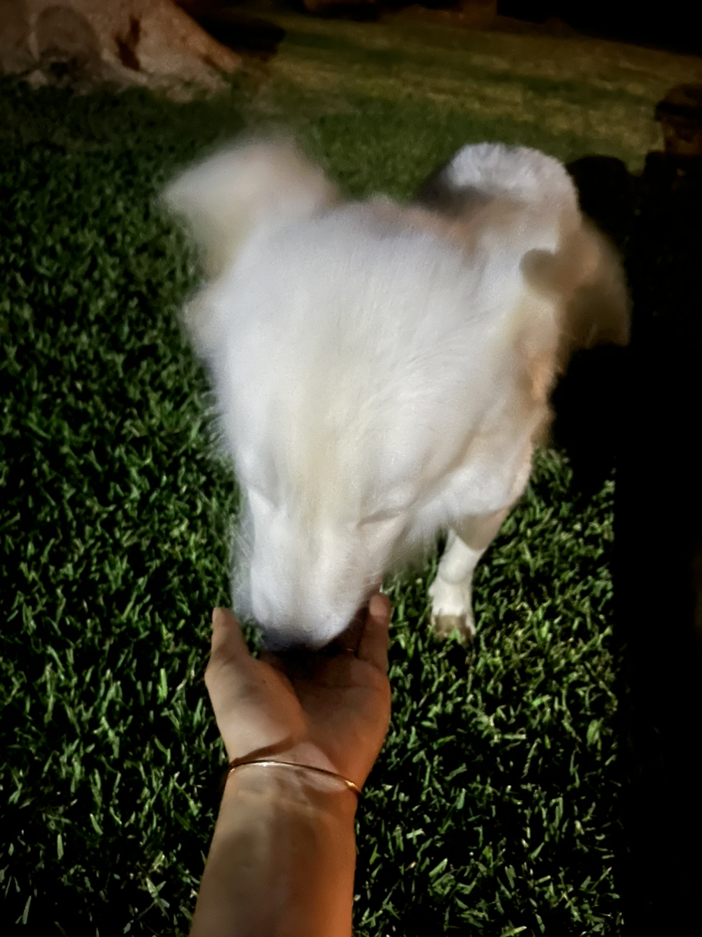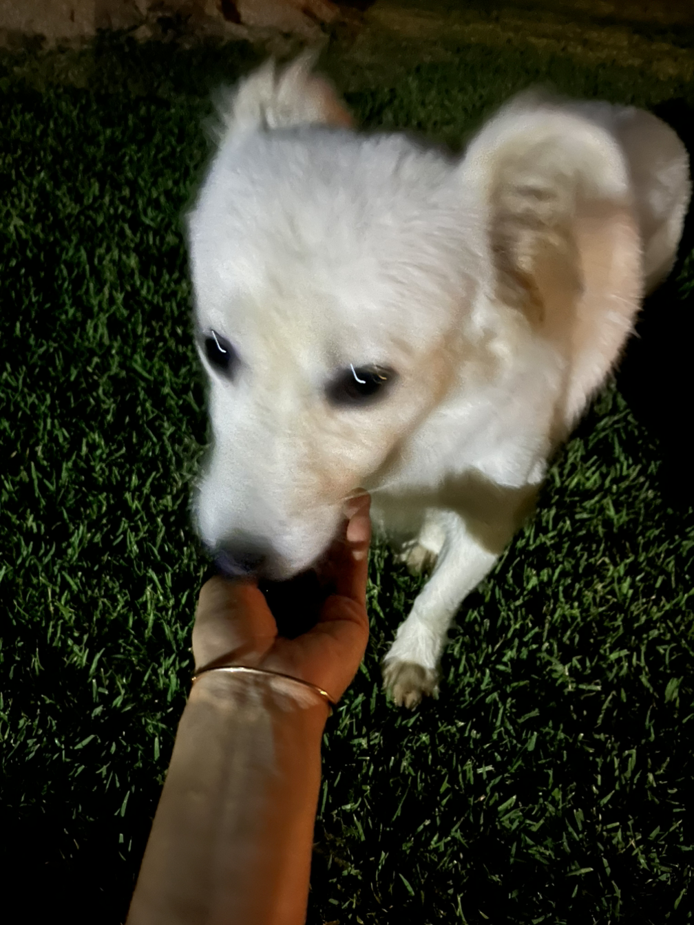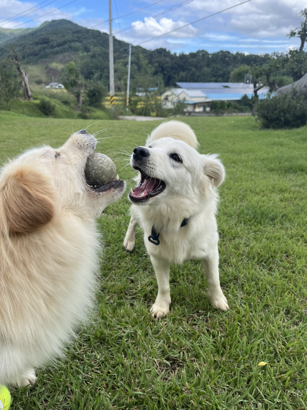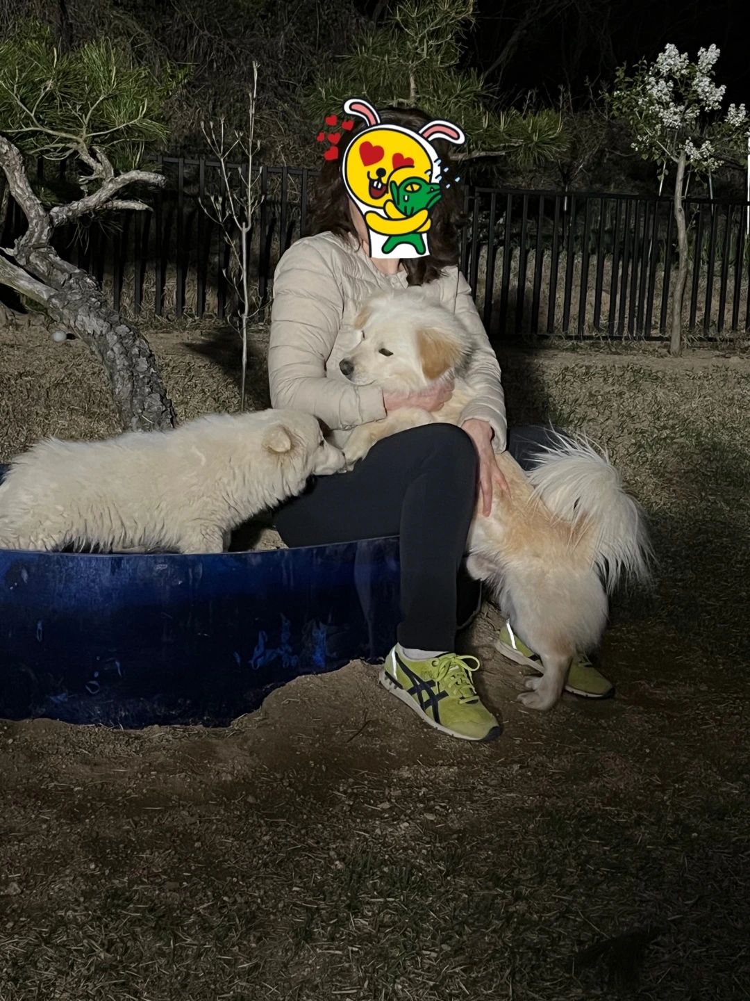 그 후로는 쓰다듬을 때 피하길래 굉장히 독립적인 강아지인 줄 알았다. 그런데 어느 날 금동이를 쓰담쓰담하고 있을 때 내 등에 콕콕- 뭉툭한 뭔가가 날 찌르길래 돌아보니 사랑이가 만져달라는 눈빛을 초롱하게 발사하고 있었다.