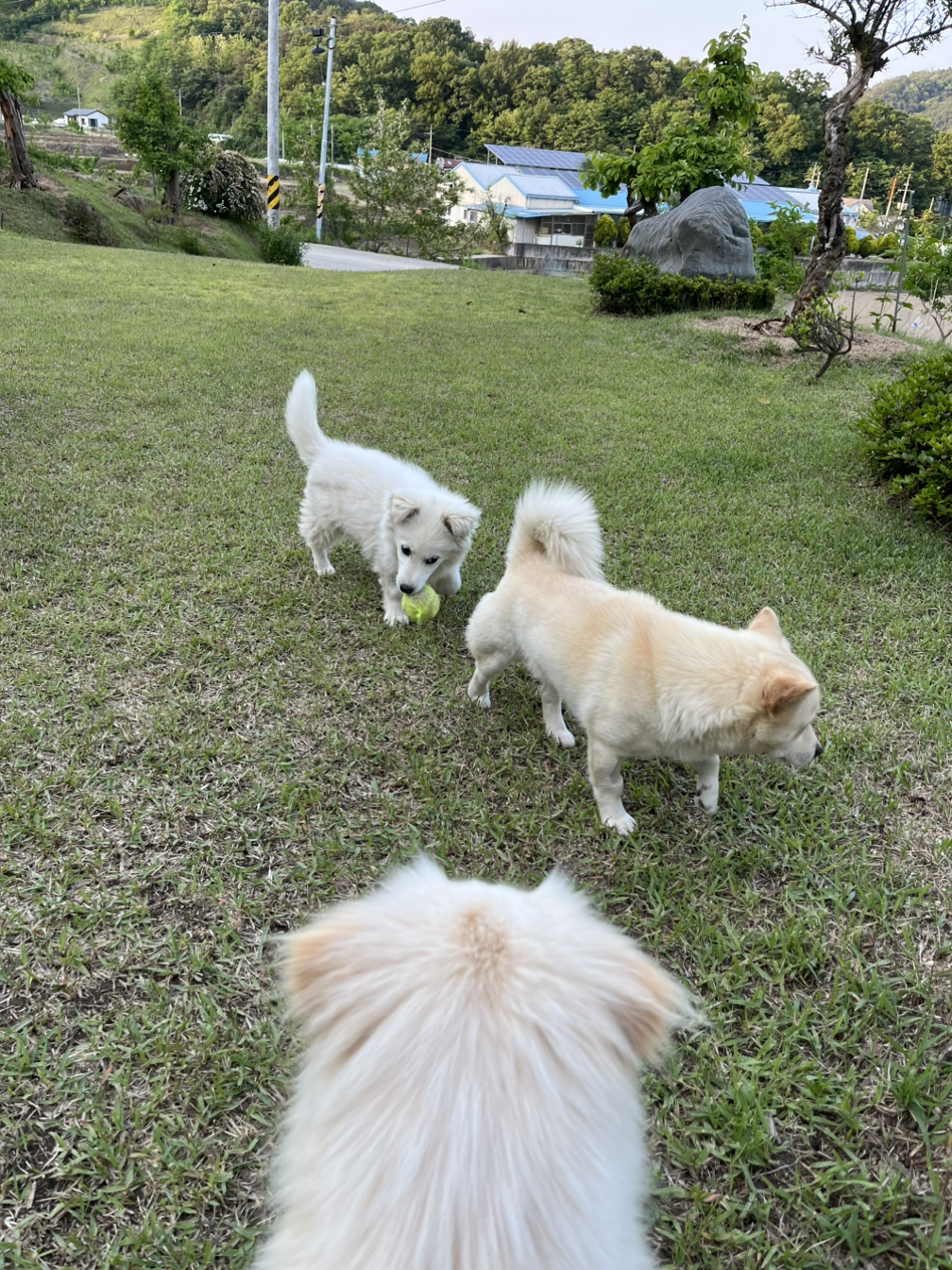 산책 때는 혼자 남겨지는 게 무서웠는지 이공, 금동이가 산책을 하면 또 울타리 사이로 탈출을 해서 따라오는 것이다.
