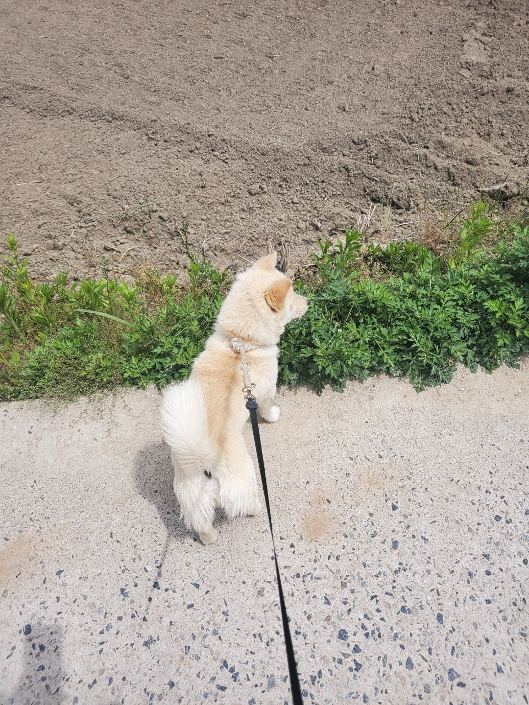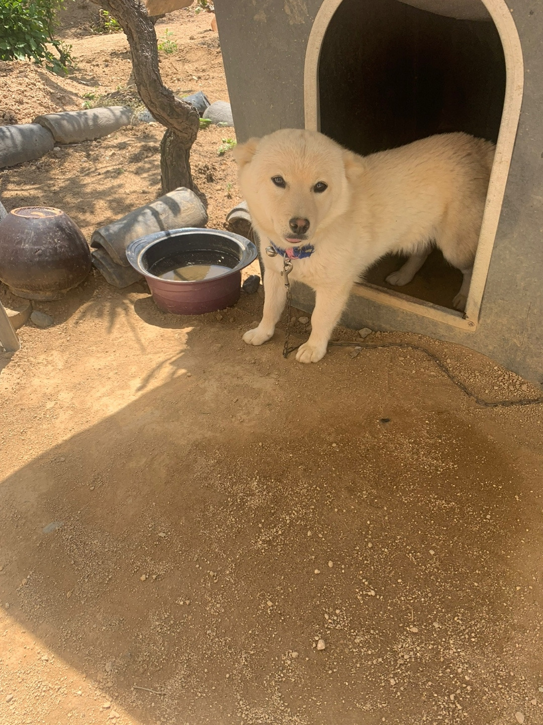 항상 묶여 있지만은 않고 가끔 산책도 했던 아이는 낯선 사람을 굉장히 경계했다. 신기하게도 마음이 통했는지 10분 정도가 지나자 내게 꼬리를 흔들며 다가왔고 간식을 받아먹고 애교를 부렸다. 평소와는 다른 모습에 사모님이 말했다. "자기 데려갈 걸 아나 보네"