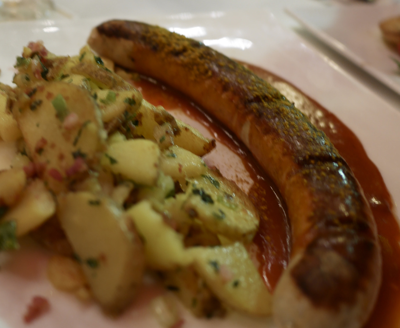 숙소에 짐을 던져놓고 강가를 거닐다 느지막하게 식당인지 바의 야외 테이블에서 맥주와 소시지, 감자, 스테이크로 그다지 고프지도 않은 배들을 가득 채웠다. 커리부어스트가 좀 짠 것 말고는 다 아주 맛있었고 1인당 만원 좀 넘게 나왔다. 동양인이라고는 우리밖에 없는 듯한 동네에서 그렇게 첫 끼니와 잠을 해결했다.