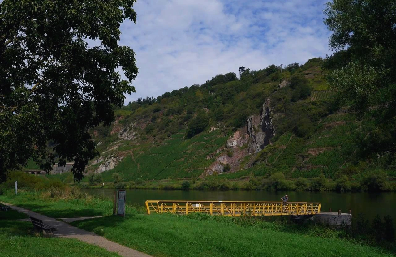 강을 따라 있는 마을들은 거의 다 유명한 산지였고 중심 마을들은 아주 작고 아기자기하게 예뻤다. 어디든 외부에 목조 골조가 드러난 전통 가옥들이 있어서 헨젤과 그레텔이 사는 마을 같았다. 그런데 피슈포르트에는 그런 예쁜 집들도 많지 않았다. 시골길 포도밭 사이를 지나 비포장도로가 강과 만나는 곳에 우리 숙소가 있었다. 1층 식당 테라스에서는 동네 할머니와 할아버지로 보이는 손님들이 담배를 피우며 와인을 마시고 있었다. 마을 사랑방 같은 호텔 알트 라인슈포트Alt Reinsport의 소박하고 작은 방에서는 폭이 아주 좁아진 모젤 강도 보였다.