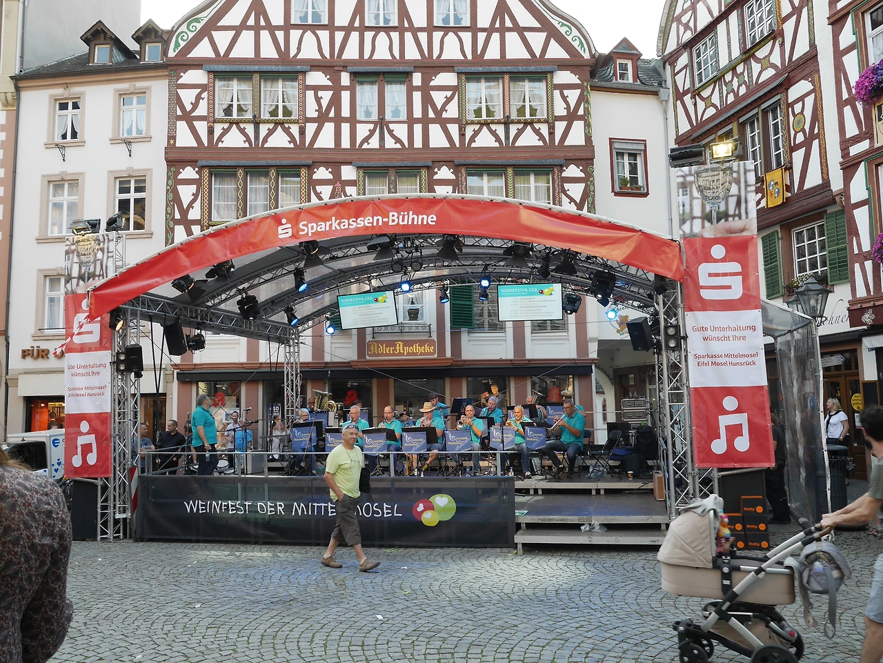 모젤 와인축제 구경도 여행의 미션 중 하나였다. 물론 기본적으로는 어떤 일정도 너무 힘들게 무리될 정도로 하지는 말자는 생각이었다. 하지만 넓지도 않은 모젤 안에서 왔다 갔다 하면서 사흘 동안 이어지는 축제에 안 가보는 것은 말이 안 되었다. 그래서 우리는 브라우네베르크 숙소에서 택시를 타고 모젤에서 가장 활기찬 마을 베른카스텔로 가서 낮부터 밤까지 먹고 마시고 축제를 즐겼다.