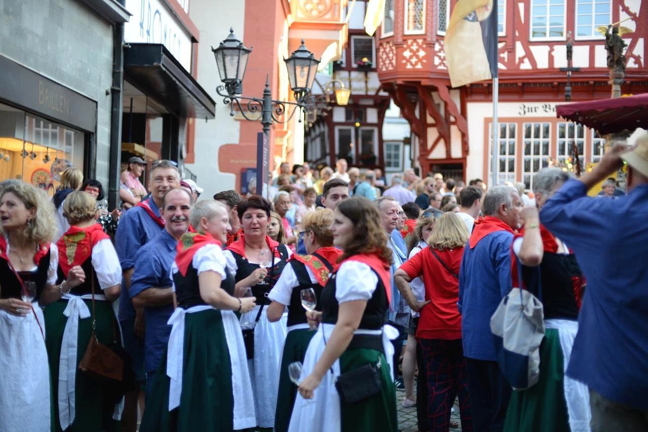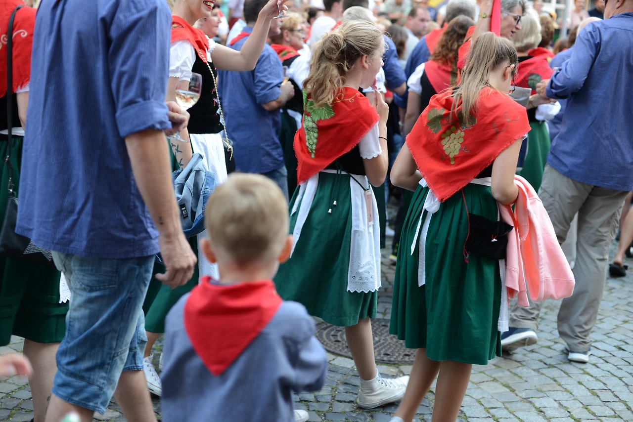 모젤라 선발대회에 출전하는 아가씨들만 전통의상을 입은 것이 아니라 남녀노소, 엄마 품에 안긴 아기들도 입었다. 우리나라 사람들이 한복 입으면 예뻐 보이듯 빨간 스카프와 초록색 치마, 푸른 셔츠 차림의 모젤 사람들은 동화책 주인공들 같았다. 독일 도자기 브랜드 빌레로이 앤 보흐 접시에 있는 그림과도 흡사한 장면이었다. 우리도 청포도 스카프를 하나 장만하고 싶었지만 가게들이 모두 일찍 문을 닫아 닳도록 구경만 했다.