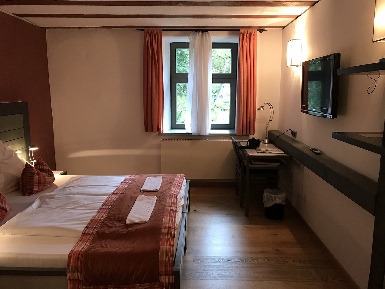 숙소 라운지에는 과거 수도원에서 사용되었던 물건들이 군데군데 전시되어있고, 분위기도 무척 조용하다. 방은 유럽 기준으로는 넓은 편이었고 창밖으로 정원이 보여 운치 있었다.