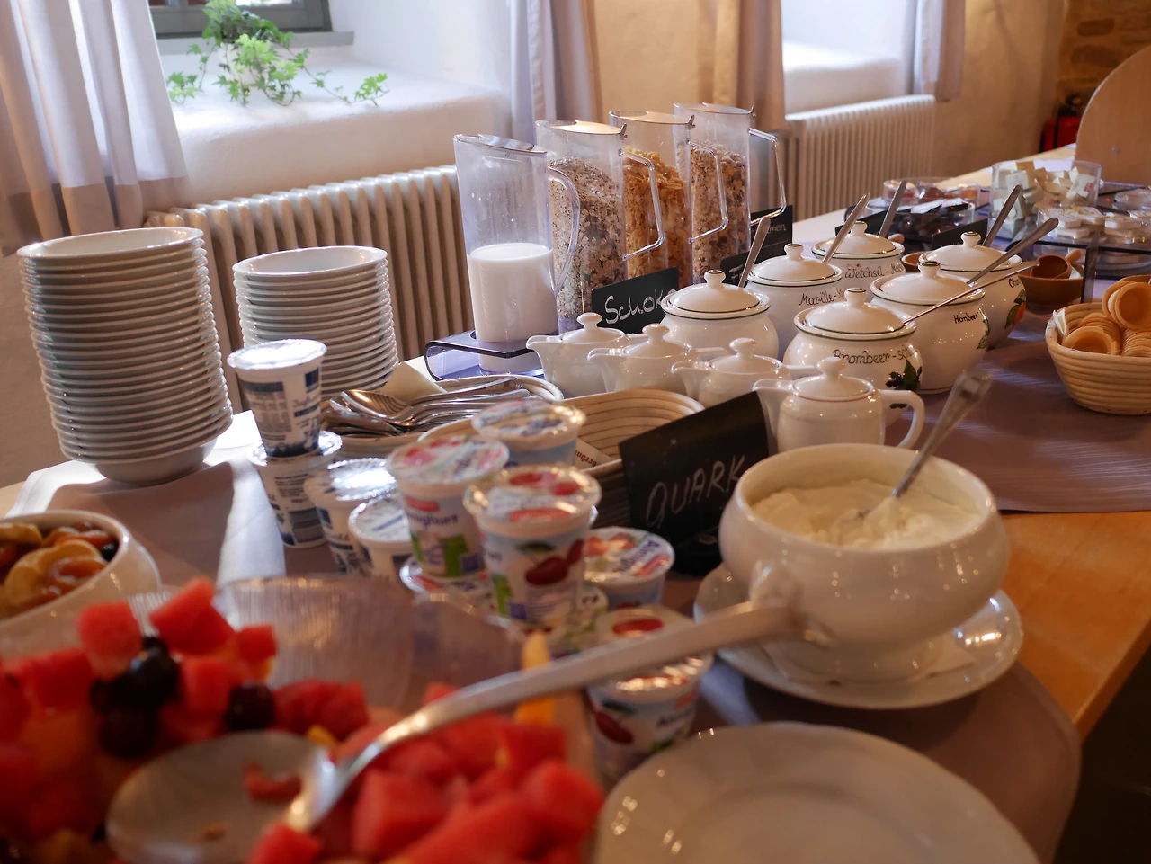 독일 여행을 통틀어 가장 행복하고, 또 역사와 예술에 푹 젖어 보냈던 저녁 다음 날 아침에는 숙소 아래층에 있는 조식 식당으로 들어섰다. 사찰의 아침처럼 고요한 식당에 깔끔하고 정성스러운 뷔페가 차려져 있었다.