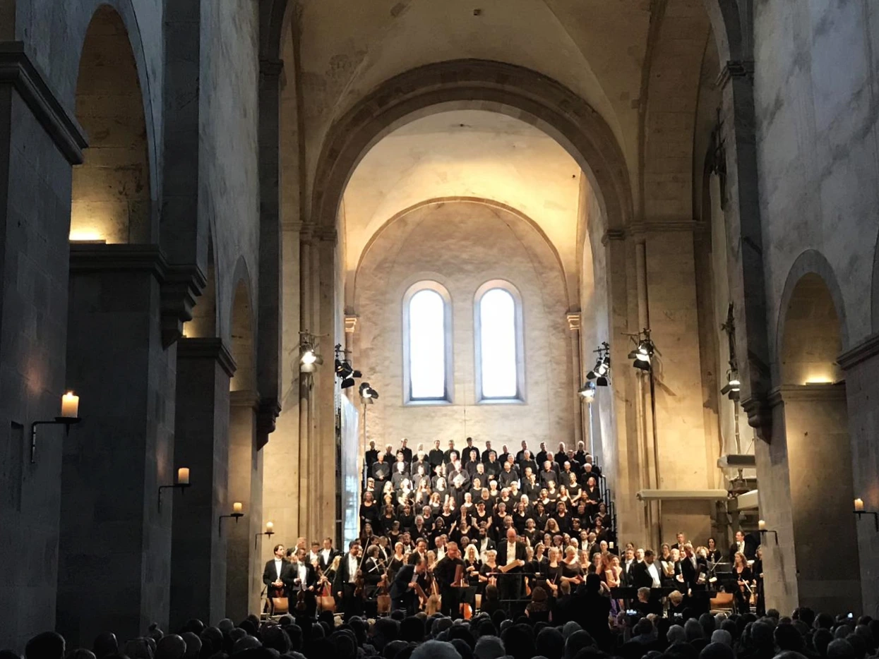 라인가우 음악제의 일부도 아니어서 정보가 없었는데, 처음 들어본 도이치 필하모니 메르크Deutsche Philharmonie Merck라는 오케스트라의 정체가 너무 궁금해서 우리는 나가다가 다시 들어가 관계자 같은 아저씨에게 어떤 오케스트라이길래 이리 멋진 연주를 하냐고 물어봤다.