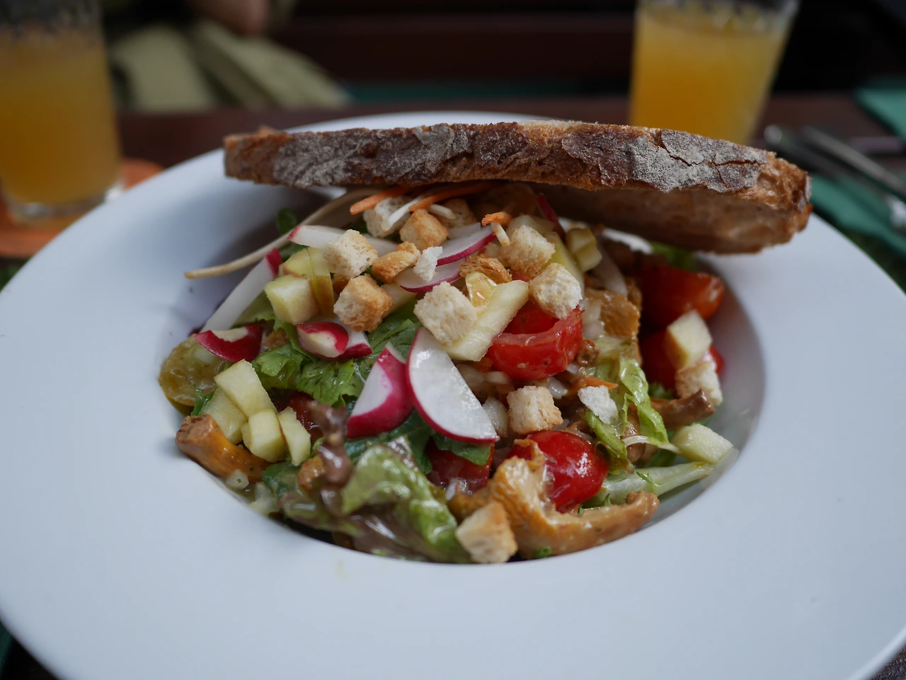 로스바허 탈Lorsbacher Thal이라는 수제 사과주 전문 식당은 나중에 알고 보니 오랜 역사를 자랑하는 맛집이었다. 날씨가 좋아 야외 테이블에 앉아 식당에서 햇사과로 직접 담근 아펠바인을 맛보았다. 한 모금 맛보니...... 달지 않고 시큼털털한 것이 드라이한 막걸리에 사과식초 섞은 그런 신기한 맛에 약간 꼬릿한 효모향이 났다. 자연의 맛이라고나 할까? 음식은 모두 무척 맛있고 짜지도 않았다.