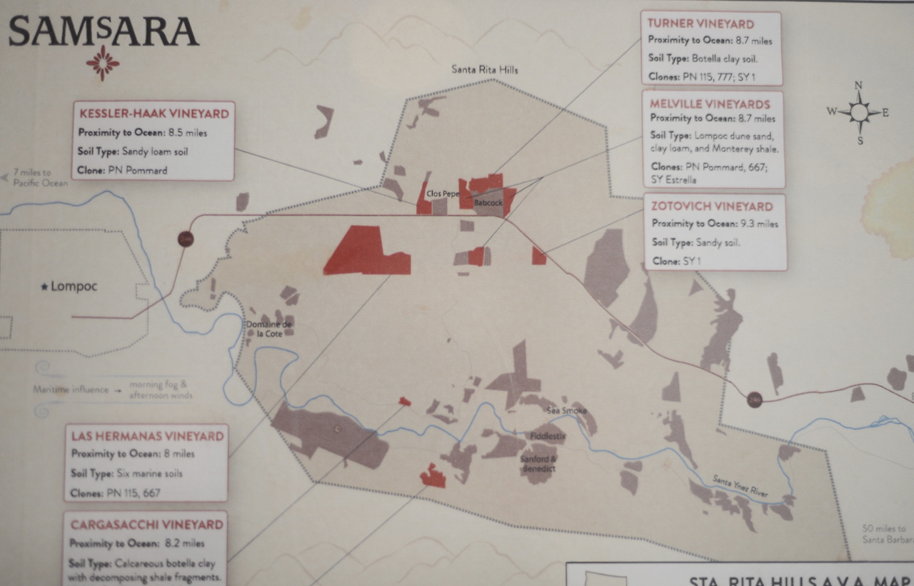 인터넷 메뉴를 통해 예약이 되는 곳도 있고 이메일로 예약하는 곳도 있다. 전화로 방문 예약을 해야 하거나 아예 방문객을 안 받는 소규모 와이너리도 있다. 우리나라에 수입되지 않는 와인을 맛볼 수 있는 중소 생산자 위주로 미리 예약을 해두었는데, 첫 번째 와이너리는 로스 올리보스에 있는 삼사라 Samsara라는 곳이었다. 와이너리, 아기자기한 가게, 식당이 좀 있는 동네 로스 올리보스는 <사이드웨이>를 촬영한 곳이다. 영화에서는 산타 바바라라고 나오지만 실제로는 영화사들이 있는 할리우드에서 가까운 로스 올리보스에서 촬영했다고 한다.