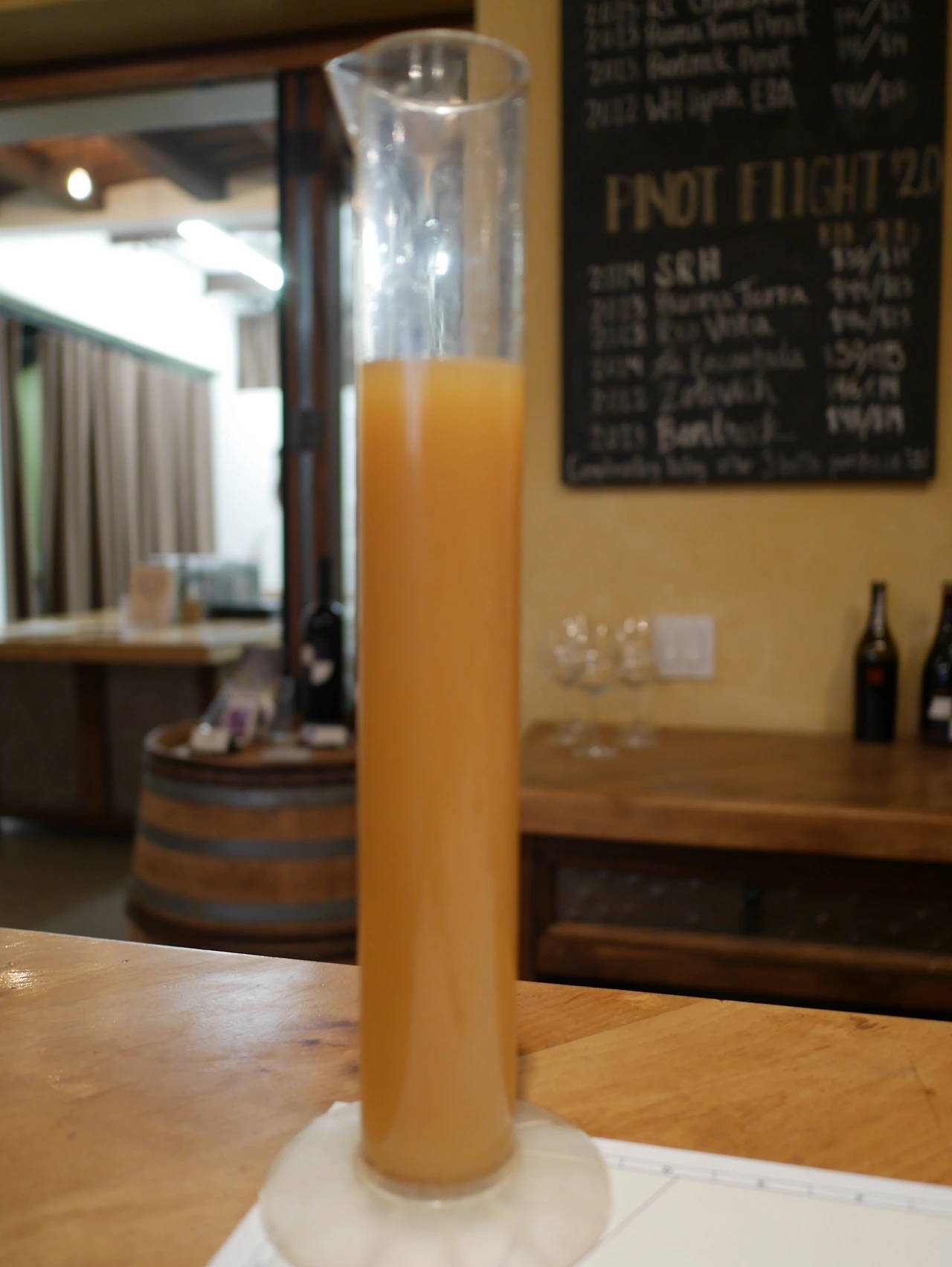 나는 피노 누아만 6 가지 시음하는 Pinot Flight를 선택했고 언니는 여러 품종을 맛보는 시음을 했다. 양조도 직접 한다는 젊은 직원과 여자 친구는 열정적이면서 친절했고, 그날 만들고 있었던 샤르도네를 맛보게도 해주었다. 필터링과 청징 등 와인에서 잡맛을 없애고 안정화시키는 과정을 거치지 않고 막 발효가 끝난 포도즙은 꼬릿하고 시큼털털해서 한 모금인데도 맛있는 척을 하기 어려운 요상한 맛이었다.