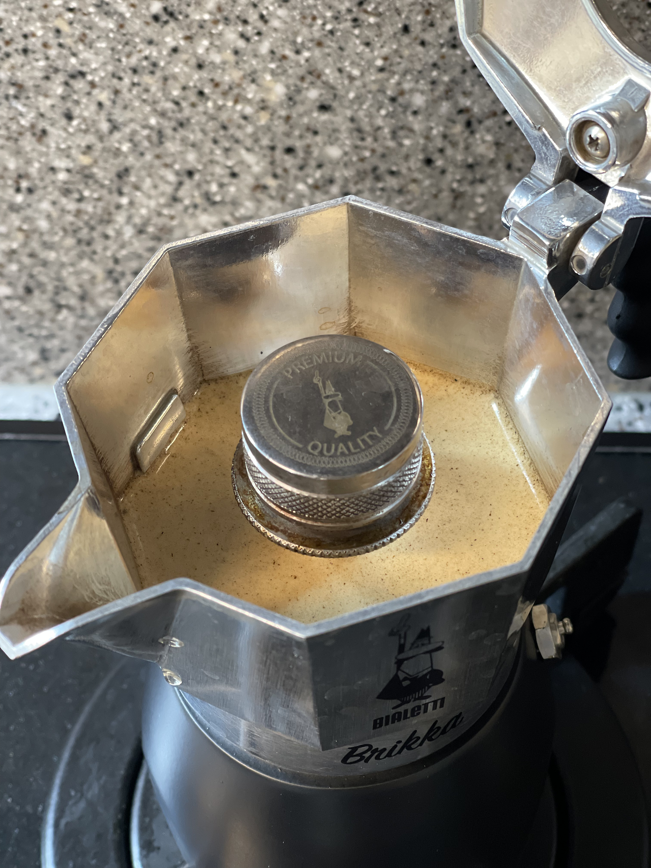 그런데 브리카에는 문제점이 좀 있었는데, 일반 모카 포트보다 더 정확하게 만들어야 커피가 잘 나왔다. 원두 분쇄 정도, 원두 양, 물 양 등이 조금만 틀리면 제대로 추출되지 않을 때가 가끔 있었다. 시간이 됐는데도 안 나오고 있다가 갑자기 화산 폭발 같은 소리가 나면서 용암처럼 커피가 분출되어 가스레인지 위로 쏟아져 나오거나 커피가 나오다 말아 아주 쓰고 크레마 없는 커피가 1인분만 나올 때가 있었다. 윗부분에 있는 밸브를 살짝 건드려 주면 나오기도 했지만 일단은 모든 과정을 정확하게 해야 한다는 사실을 깨닫고 나는 차츰 브리카 로봇이 되어갔다.