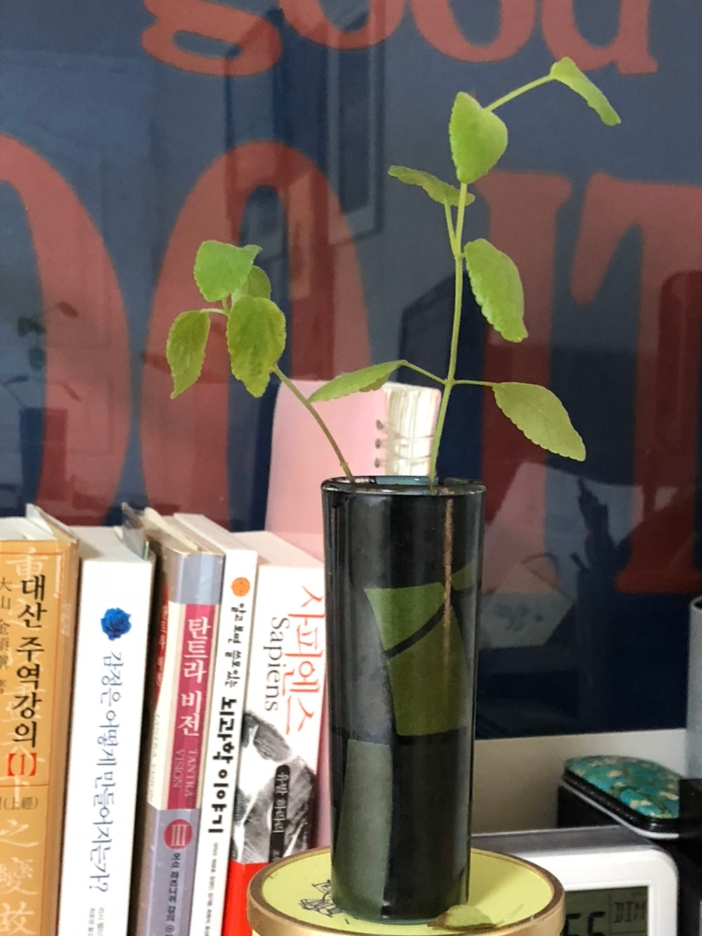 오늘 아침엔 한 달 전 모닝 티 테이블을 꾸미며 스트레이트 잔에 꽂았던 여린 세이지가 뿌리를 내렸다는 사실을 확인하며 금강권을 돌린다.