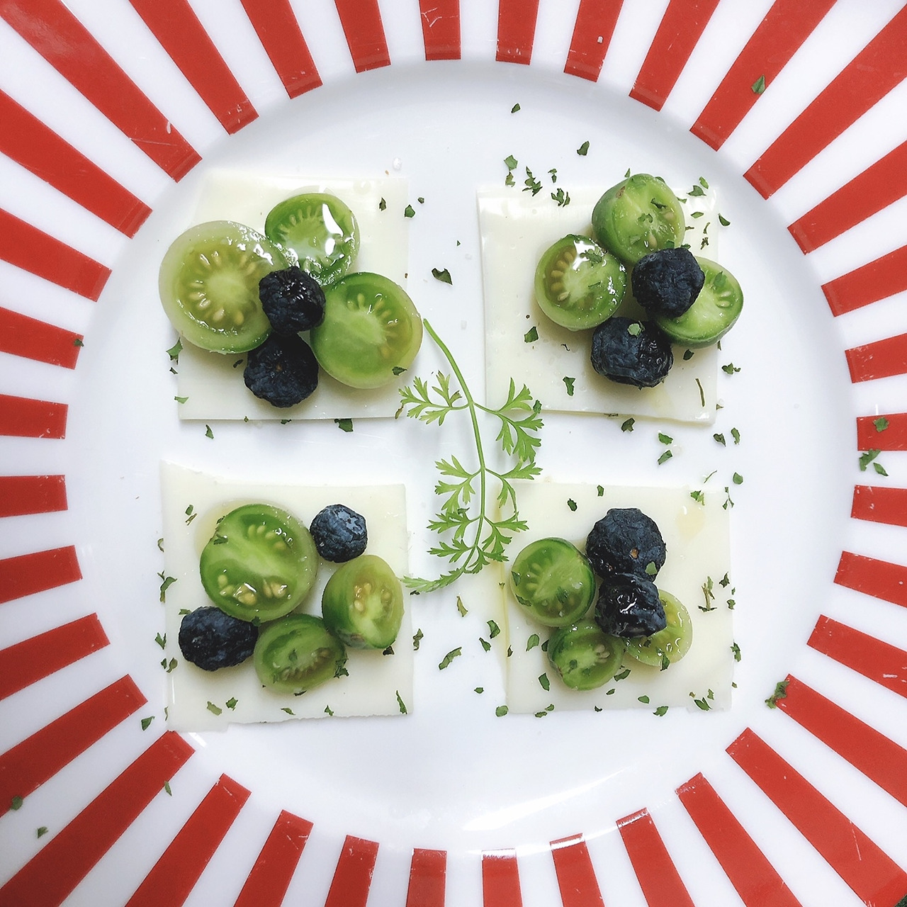 오늘 아침 카프레제 샐러드는 빨강 토마토의 정석을 무너뜨리고, 그린 토마토의 새로운 영역을 영토 화한다. 경험하지 않은 세계는 구경꾼의 세계! 난 과감하게 먹는다.
