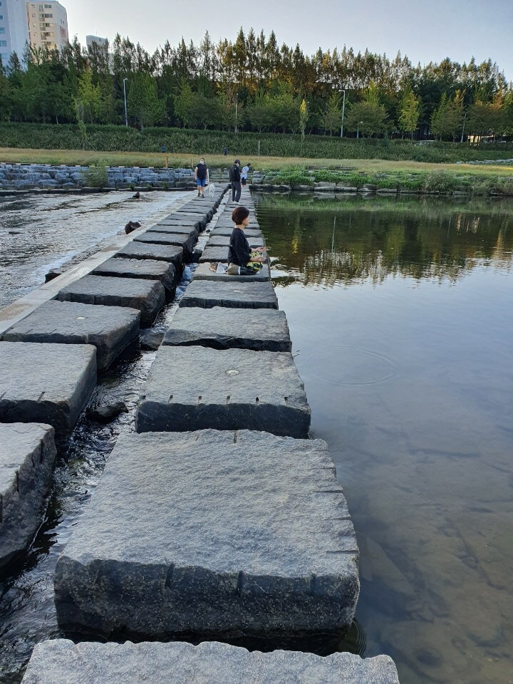 냇가 돌다리 위에 앉아 고요히 명상하는 시간이 즐겁다.