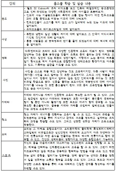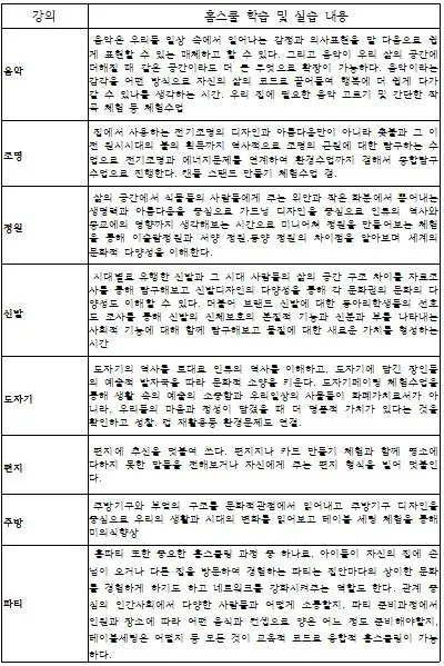 사랑과 품격, 협력과 소통은 동서고금을 막론하고 변하지 않는 교육의 핵심가치이자 삶의 핵심 가치다. 가정의 홈스쿨링으로부터 이러한 가치를 배우고 자란 아이들은 든든하게 자란다. 어떤 상황에서도 흔들림이 별로 없다. 그렇다면 우리의 실제 생활 속에서 홈스쿨링의 코드가 될 수 있는 일상은 어떤 것들이 있을까? 우리들의 라이프스타일에 홈스쿨링의 중요한 아이디어가 산재해있다. 일상 생활의 모든 코드를 섞어 필립스탁의 옹프 탁자처럼 융합적이고 창의적인 프로젝트 학습으로 교과지식, 창의인성, 사고력 향상의 전인적인 학습이 가능하다. 바로폴리매스의 다재다능함이다.