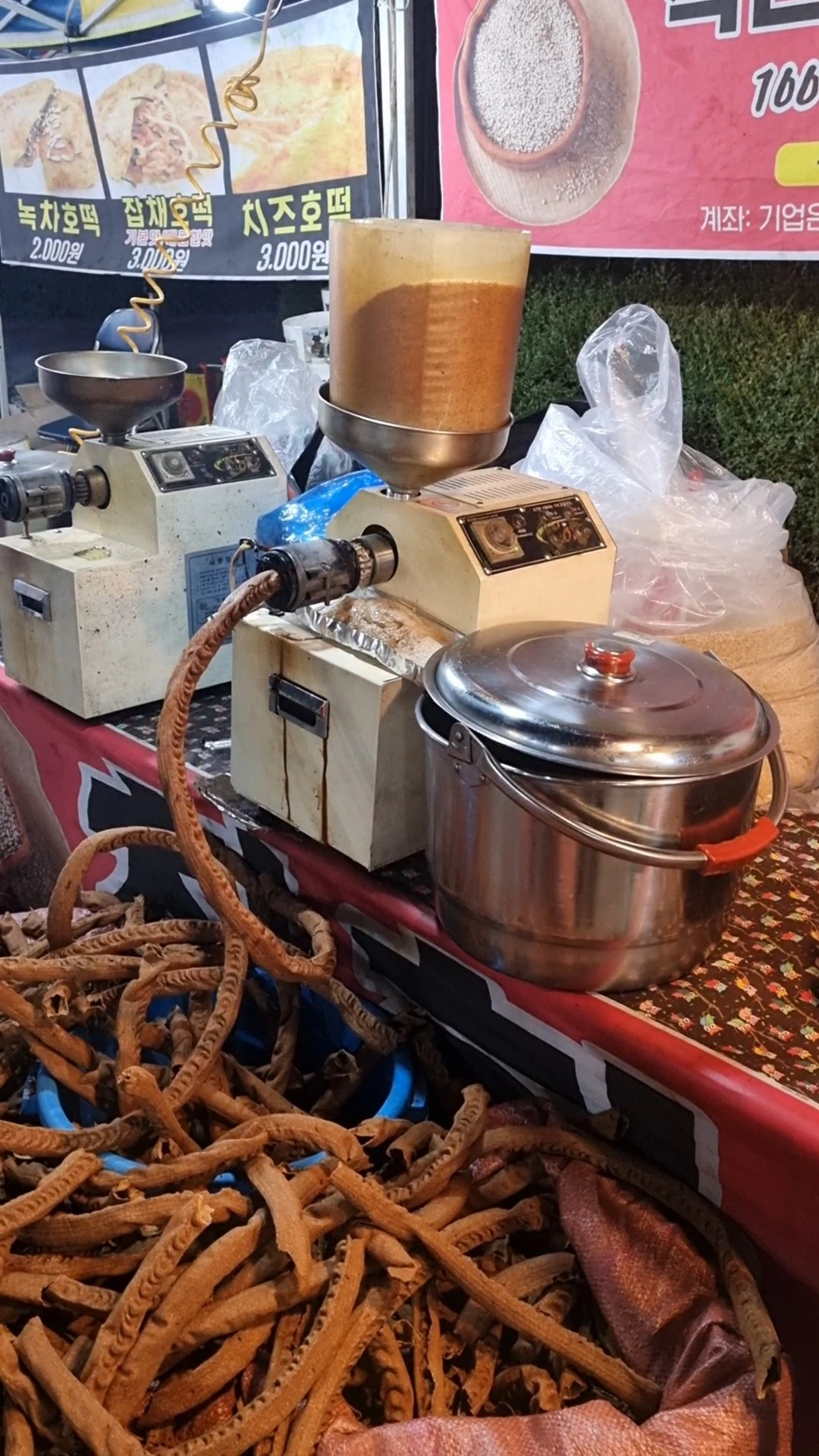 호떡 옆집에선 참기름과 들기름을 즉석에서 짜 팔았다. 깨의 고소한 향에 이끌리듯 한참을 앞에 서 있었다. 정말 좋은 향이다.