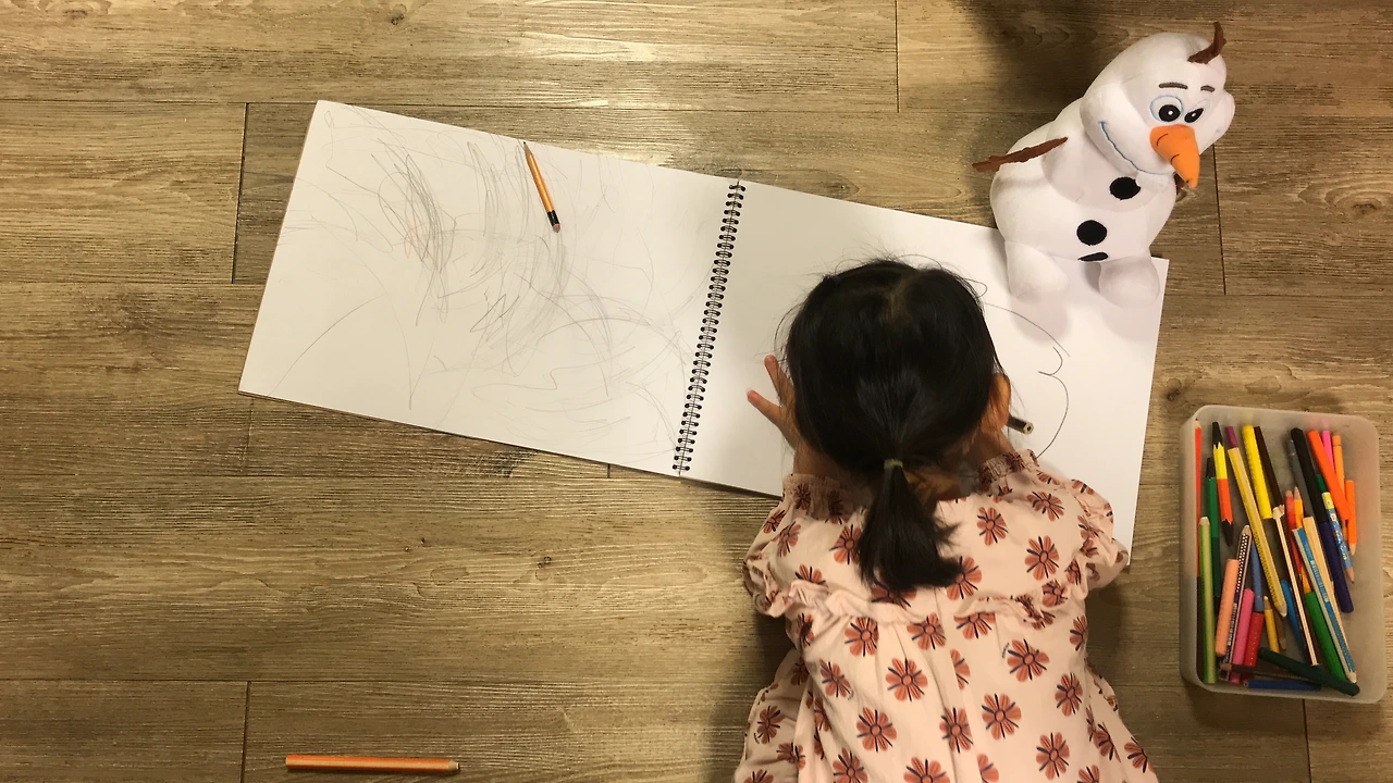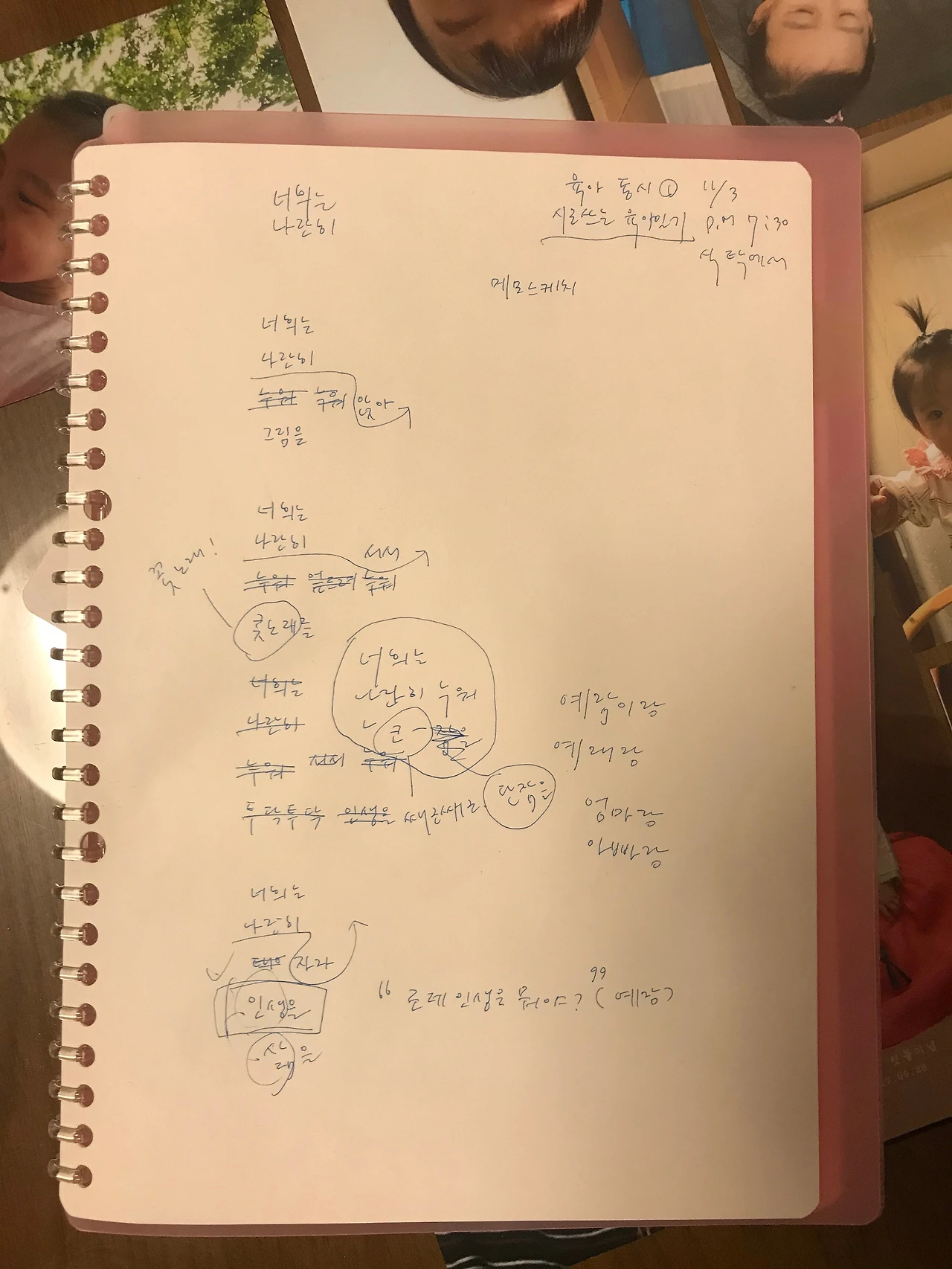 큰 스케치북을 펼쳐 한쪽씩 차지하고는