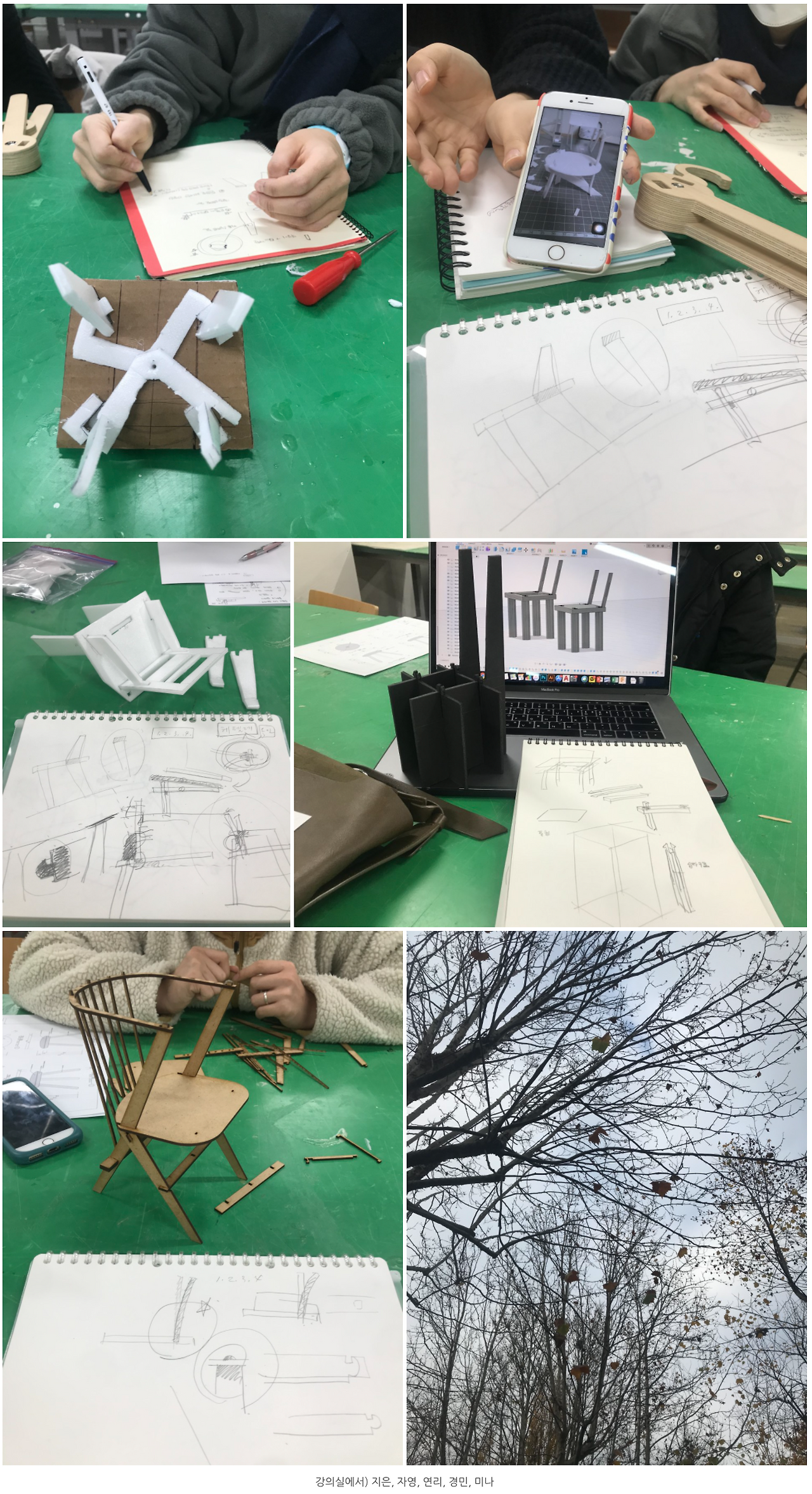 지금까지 학생들이 열심히 만들어 온 모형은 1번과 2번에 해당되는 모델이었는데요. 이 과정을 통해 의자의 구조와 디테일을 찾고, 전체와 세부 형태도 다듬어 갑니다.