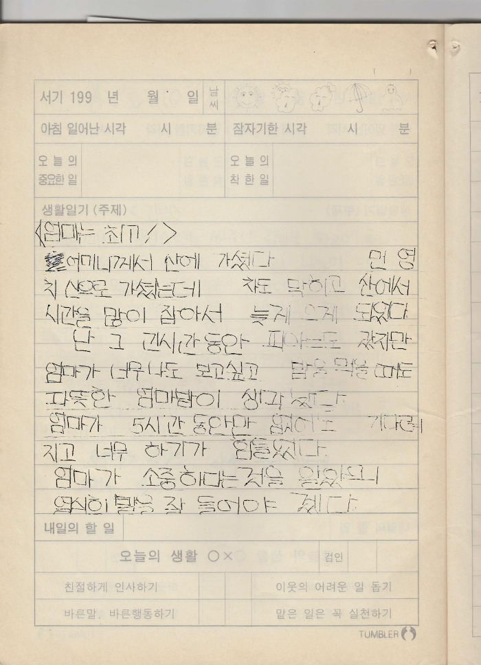 깨 쏟아지는 엄마의 사랑은 서울까지 계속되었다. 음식이라고는 시리얼 말아 바나나를 얹어 먹는 게 전부인 딸에게 2주에 한 번씩 얼려서 보내주는 소고기 뭇국, 육개장, 잡채, 미역국, 김치찌개, 강된장. 여름이면 갓으로 담근 물김치, 깍두기, 동치미, 오이소박이. 그것도 모자라 고등어까지 일일이 다 구워서 보내주곤 했다. 엄마가 보내온 박스를 다시 냉장고에 정리해 넣으며 국에 깨를 못 넣는 것이 얼마나 큰 아쉬움 일지 생각하면서 혼자 웃곤 했다. 그리고 박스 안에 깨처럼 콕 박혀있는 엄마의 쪽지 한 장. 딱지처럼 접어서 꼭 숨겨놓은 편지를 한쪽 다리부터 찬찬히 풀어서 보는 것이 나를 살게 하는 힘이 되곤 했다. 내일은 어떤 걸 먹을까. 그 생각만으로 오늘을 보낼 의미가 생겨났다.