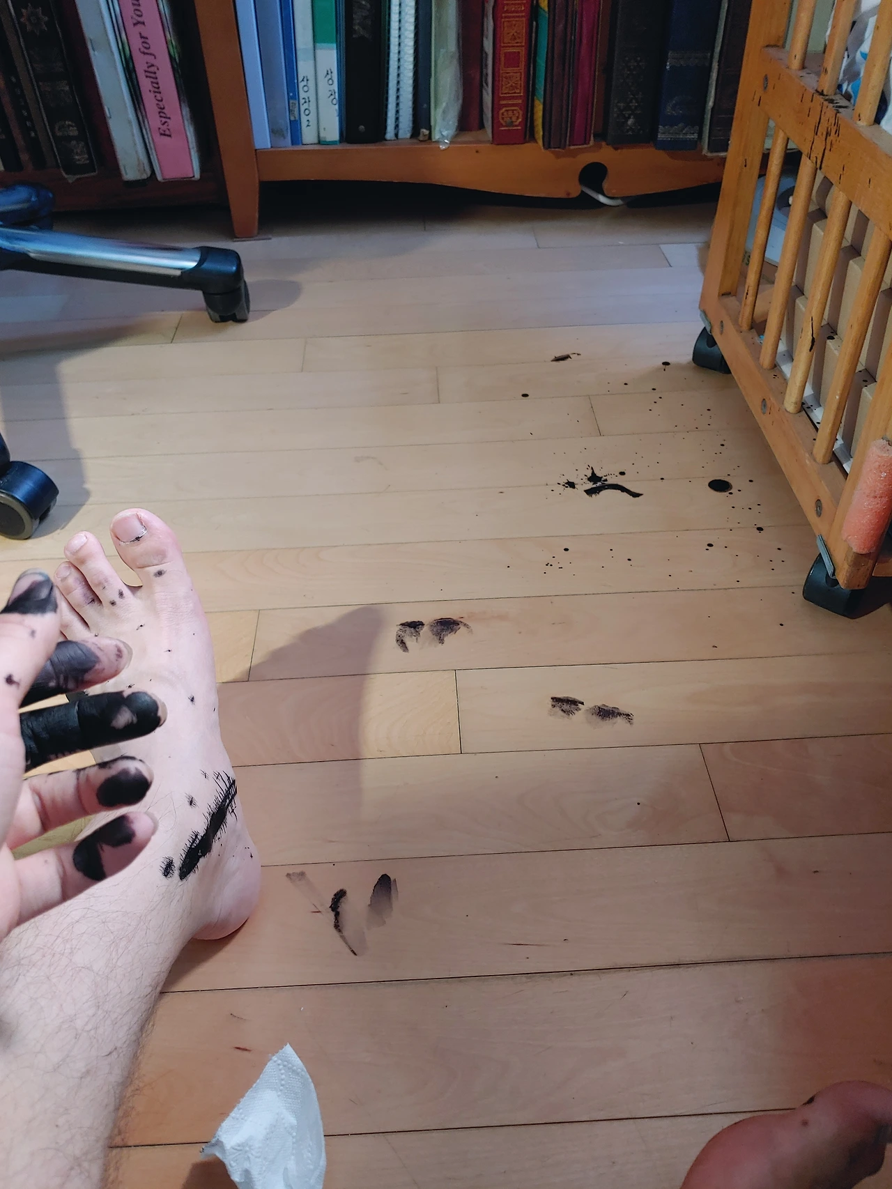 프린터와의 전쟁에서 가장 골치아픈 점은 뭐니뭐니해도 손이 더러워진다는 것이다. 잉크를 다루는 이상 너무나 당연한 일이니 장갑을 끼면 그만 아니겠고 생각할 수도 있겠지만, 장갑을 끼고 작업하는 것도 마냥 쉽기만 한 일은 아니다. 잉크가 묻은 장갑으로 무심코 뭘 잡았다간 거기도 더러워지니까 여차하면 장갑을 벗어야 하는데, 비닐 장갑이나 라텍스 장갑 따위는 손쉽게 쓱 벗고 낄 수 없어서 그 과정 사이에 어딘가는 더러워지기 일쑤다. 게다가 잉크 리필의 신이 온대도 잉크가 넘치거나 새어서 흘러나오는 것은 피할 수 없기 마련이라 결국에는 잉크에 젖은 휴지와 신문지와 장갑 따위로 주변이 난잡한 꼬락서니가 되고 만다.