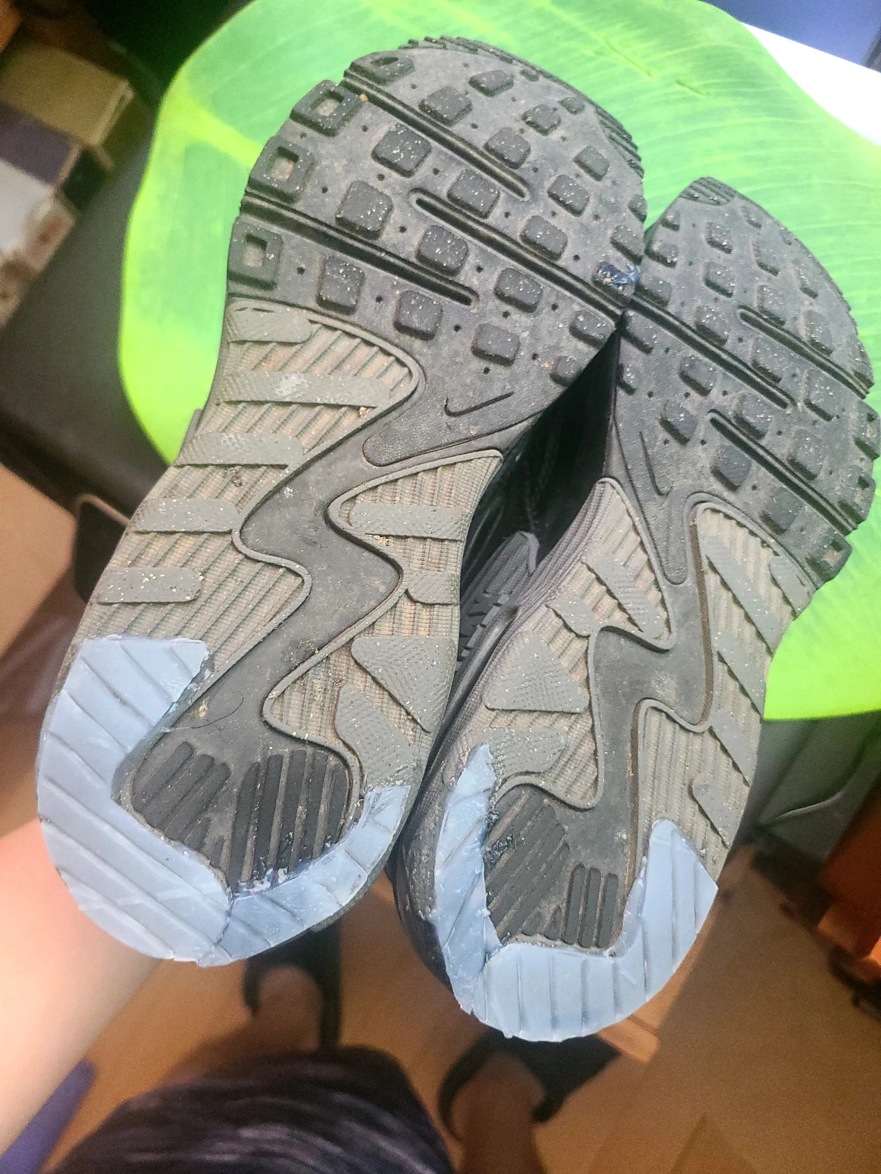 그래서 떼어낸 패드를 이번에는 나이키 에어 맥스 액시스라는 러닝화에 본드로 붙였다. 같은 러닝화라도 이 모델은 EVA를 압축해서 더 견고하게 가공했다는 파일론을 밑창으로 채택하고 있고, 그 견고함 덕분에 보강 패드가 착화감을 해치진 않았다. 뒤쪽만 몇 밀리 높아진 탓에 발이 약간 앞으로 쏠려 발가락이 눌린다는 부차적 문제가 발생할 따름이었다. 끈을 아주 단단히 묶어서 발가락이 눌리지 않게 만들든지 앞쪽 패드까지 세트로 쓰든지 해야 할 판이었는데, 나는 둘 다 싫어서 뒷굽의 마모된 부분만을 메꾸도록 패드를 잘라 붙이는수를 썼다. 애초에 공산품의 예정된 수명을 거스르는 판에 보강재를 고스란히 아낄 이유가 어디 있겠는가?