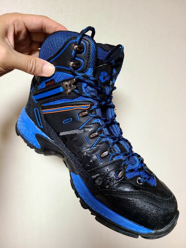이런 과정을 거쳐 직접 작업한 네파의 등산화는 전문 업체들이 작업을 거부했음에도 성공적으로 접착되었고, 이후로 도합 43킬로미터를 걷고도 별 문제 없이 붙어있다. 전문가들이 사용한다는 접착제를 살 수 없어서 일반인도 쉽게 구할 수 있는 제품을 쓴 터라 불안했는데, 이만하면 합격점을 줘도 괜찮을 것 같다. 물론 이렇게 잘난듯이 써놓자마자 바로 다음 산행에 밑창이 도로 벌어질지도 모른다는 불안감은 지우지 못해서 신발끈을 상비하고 다니지만, 그때는 또 다시 작업하면 되지 않겠는가. 산제물을 바쳐서 망자의 혼을 육신에 매어두는 의식을 치러야 하는 것도 아니니, 합피를 주 소재로 택해서 가벼운 것 하나는 확실히 장점인 하이컷 등산화의 수명을 연장하는 데에 그 정도 노력은 지불할만 하다고 생각한다. 그렇다곤 해도 진짜 가죽이었다면 이 고생을 안 하고 더 잘 신었겠지만…….
