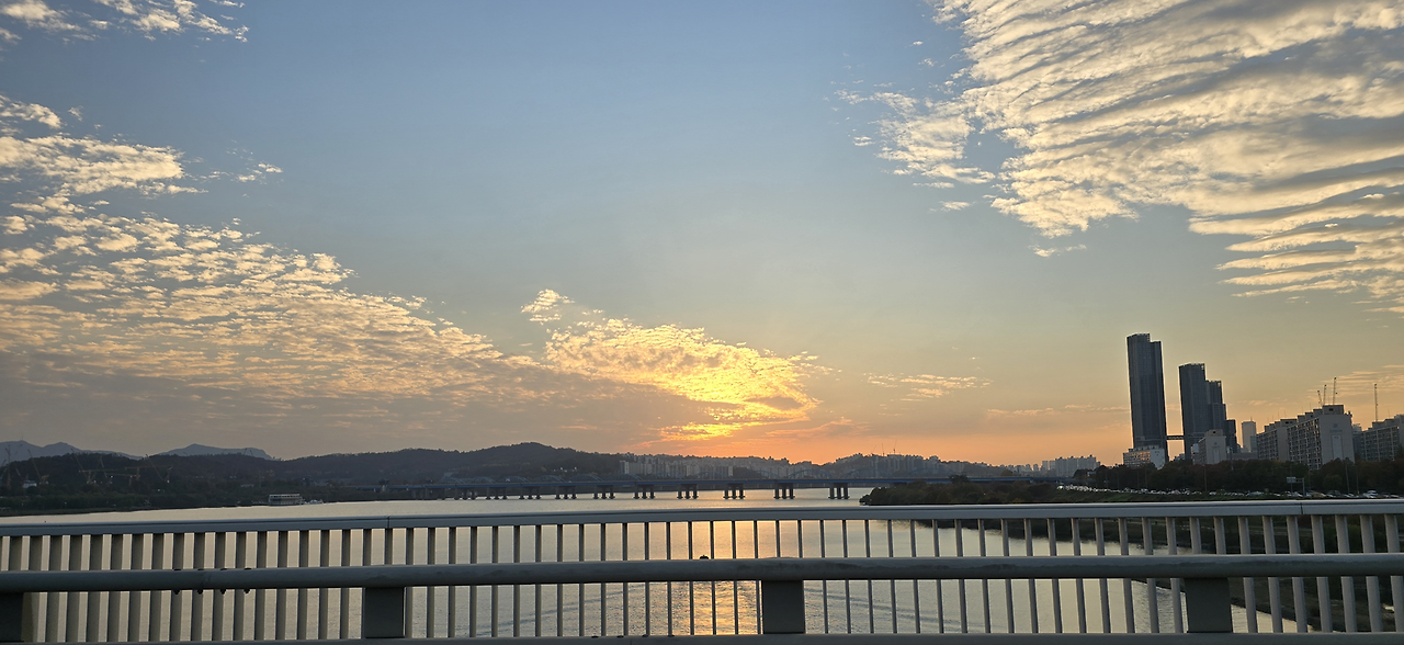 2025년 11월 11일 오후 5시, 평소와 다름없이 강의를 마치고 집으로 돌아오던 길이었습니다. 늘 지나는 반포대교 위, 차창 밖으로 문득 하늘이 눈에 들어왔습니다. 그냥 지나치기 아쉬워, 마침 차량이 막히는 틈을 타 스마트폰을 꺼내 들었습니다.