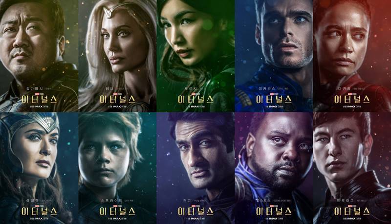 이터널스는 갑자기 많은 인물들의 서사가 단 시간에 편집되어 열거되었다. 이럴 때 인물들의 과거는 대화를 통해 유추해야 하는데 다행히도 타노스와 어벤저스를 연결하는 세계관으로 진행되며, 마블을 본 사람들의 이해를 돕기도 했다. 하지만 그럼에도 불구하고 이터널스는 기존 마블이 가졌던 캐릭터 중심의 이야기가 약점이 될 수밖에 없었던 영화이기도 했다.