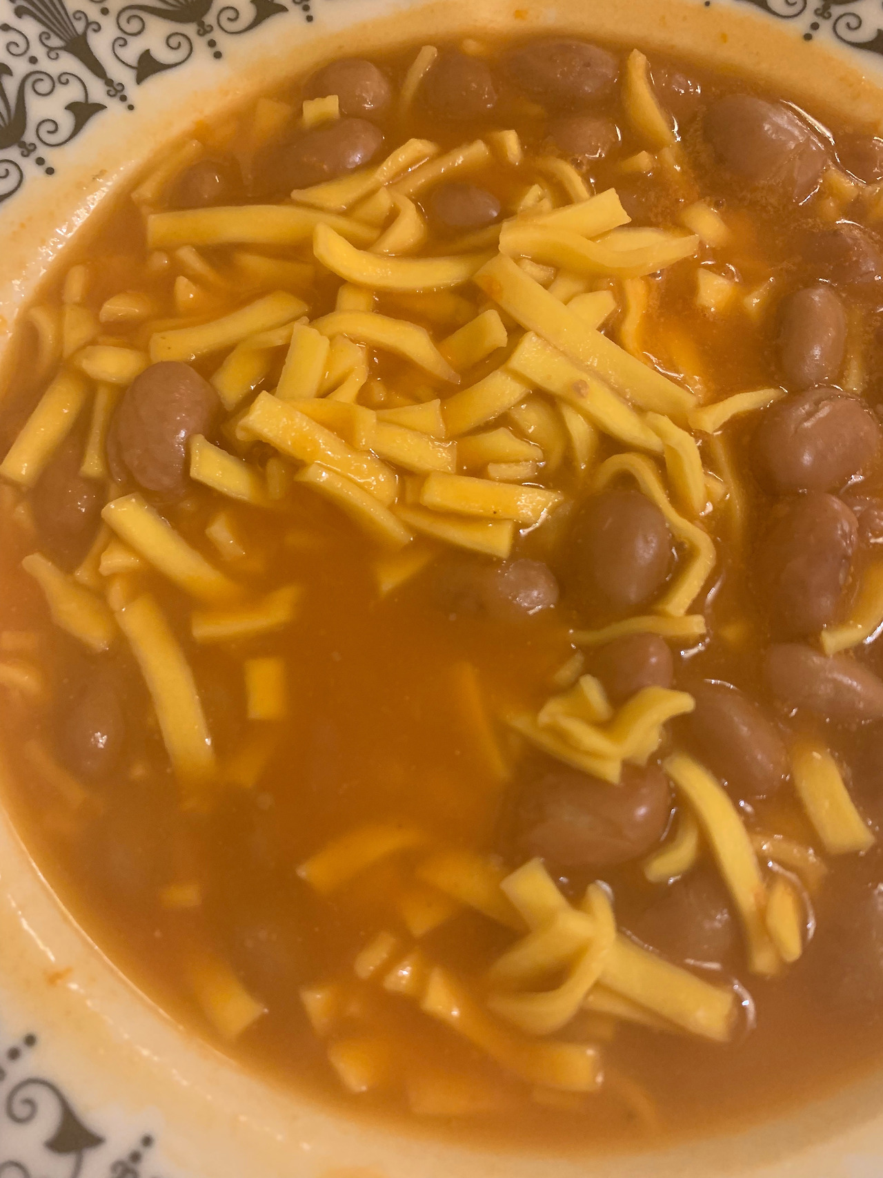 베이스는 토마토소스였고, 보시다시피 부서진 파스타 조각들과 콩이 섞여있다.