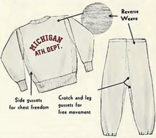 스웻셔츠는 “가장 재미없는 남성복 중 하나”라고 불릴 정도로 특유의 감성 혹은 문화적인 힘이 부족한 옷이다. 그러나 스웻셔츠가 운동복의 기준을 바꿨음에는 틀림없고, 그만큼 중요한 한 페이지를 가지고 있음에도 틀림없다. 그 이야기를 시작해보자면, 1900년대 초까지만 해도 운동 후 체온 유지를 위하여 입는 옷이나 미식 축구 선수들이 시합을 할 때는 두꺼운 울(wool, 모직)로 된 옷을 입었다. 울의 땀 배출이 좋다고는 하지만 이는 일상생활에 있어 통용되는 말이지 전문적으로 운동을 하는 선수들에게는 전혀 해당이 되지 않는 것이었다. 이들에게 울이란 땀을 잘 흡수하고 잘 배출하지 못하여 무거워지는 소재일 뿐이었다. 선수들은 고통을 호소했고, 이 고통을 부수어 줄 혁명은 한 부자(父子)로부터 시작되었다.
