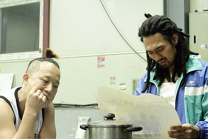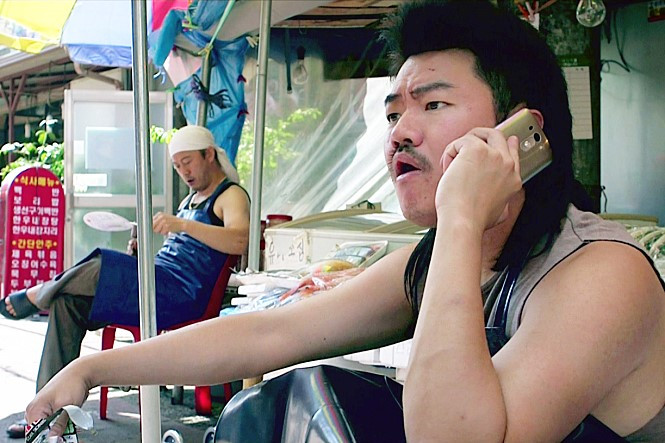 그런데 이런 쇼트의 구성은 한 번에 그치지 않고 두 차례 더 등장한다. 오프닝 시퀀스에서 일록에게 어린 시절 친구인 예건이 찾아온다. 예건과의 저녁 식사 후 화면은 암전 된다. 이 암전 된 화면을 밝히는 인물은 또 일록이고 오프닝 쇼트와 똑같은 행동을 하고 거의 똑같은 장면이다. 다만 오프닝 쇼트의 크기가 풀 쇼트인 반면에 이 쇼트의 크기는 미디엄 쇼트이다. 이렇게 시작한 두 번째 시퀀스가 끝나고 화면은 다시 암전 된다. 이어지는 세 번째 시퀀스의 화면을 밝히는 주체는 역시 일록이고 앞의 쇼트들과 거의 똑같다. 다만 이번에는 쇼트의 크기는 조금 더 일록에게 다가간 클로즈 쇼트이다. 영화는 여기서 일록에게 집중하라고, 일록의 마음이 변해가고 있다고 말하는 것 같다. 실제로 일록은 세 번의 시퀀스를 거쳐 노래하는 꿈을 접하고 실현하기로 결심한다. 아니면 이러한 세 번의 반복은 영화 <패터슨>에서 패터슨(아담 드라이버)이 아침에 잠에서 일어나는 쇼트를 8번 보여주는 것과 유사하다는 생각도 든다. <패터슨>은 패터슨의 하루 일과를 월요일부터 일요일까지 담아내고 있다. 패터슨이 잠에서 일어나는 쇼트가 8번인 이유는 <패터슨>이 월요일 아침으로 끝나기 때문이다. 그래서 이러한 일주일의 하루하루는 유사하지만 각각 조금씩 다른 변주가 일어난다. 이처럼 <델타 보이즈>의 초반 세 번의 시퀀스는 일록의 관점에서 보았을 때, 모두 ‘공장 문을 연다’, ‘공장에서 일을 한다’, ‘면요리(짜장라면, 국물 라면, 짜장면)를 먹는다’의 순서로 이루어지기 때문이다. 게다가 세 번의 시퀀스 이후 일록은 매형의 꾸짖음에 마음이 상해서 공장 일을 그만두고 일상에서 탈출한다.