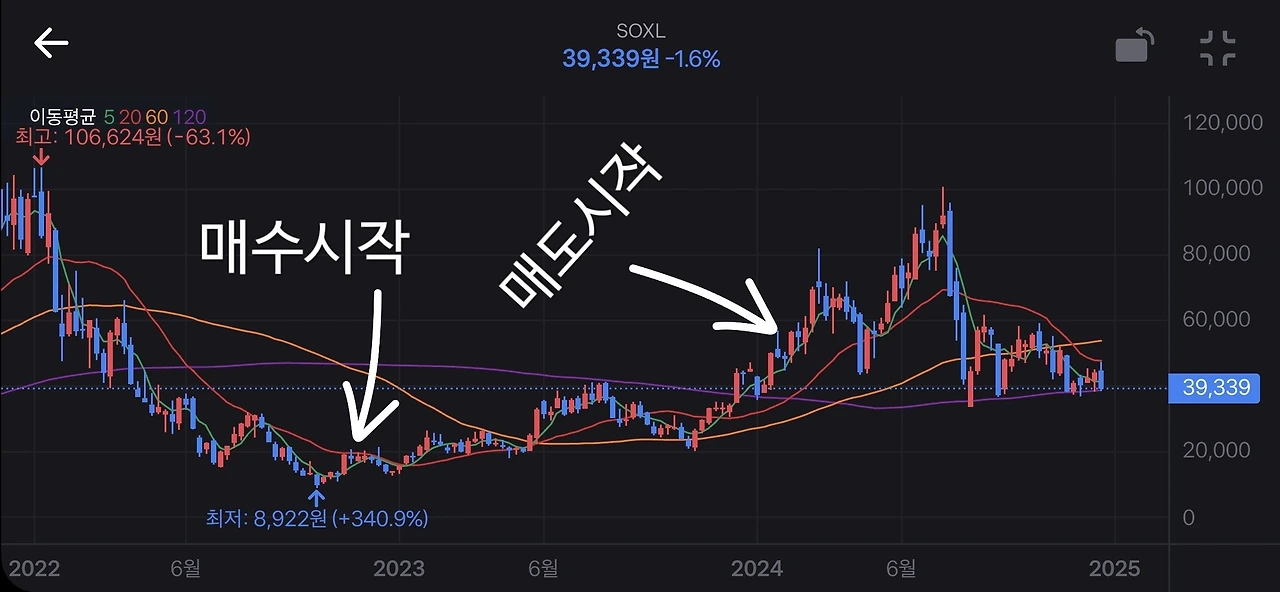 나는 미국 반도체를 추종하는 3배 레버리지 SOXL을 선택하여 먼저 230주를 평단 14,270원에 매수한 후 조정이 올 때마다 계속해서 저점매수를 진행해 갔지. 직장인 대출을 통하여 추가 시드를 마련하였고 때마침 처남이 빌려준 3000만 원이 천군만마와도 같은 지원군이었어