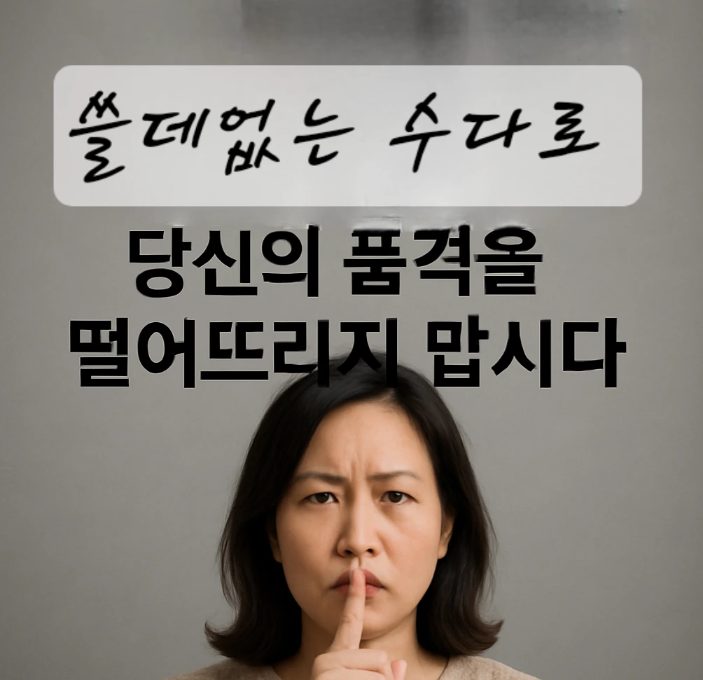 가정에서, 직장에서, 모임에서… 쓸데없는 수다로 당신의 품격을 떨어뜨리지 맙시다.