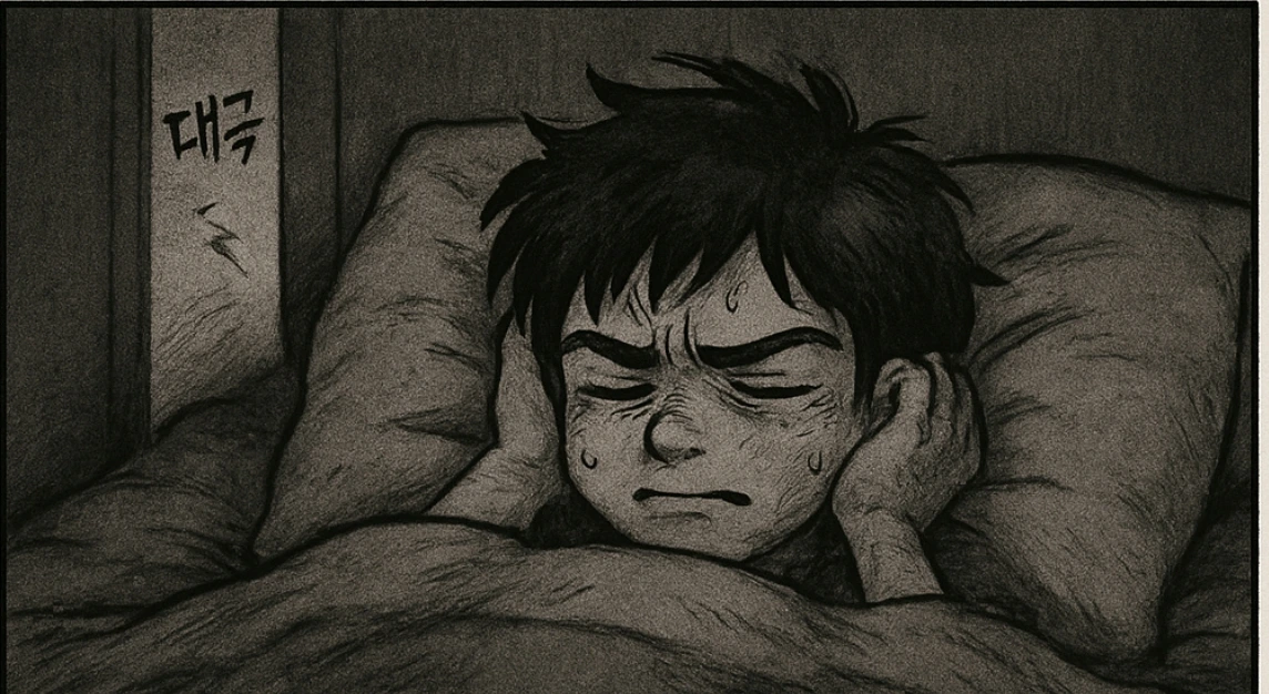 소년 바울이는 이불속에서 귀를 막았다. 그러나 다툼은 얇은 천을 뚫고 들어왔다.