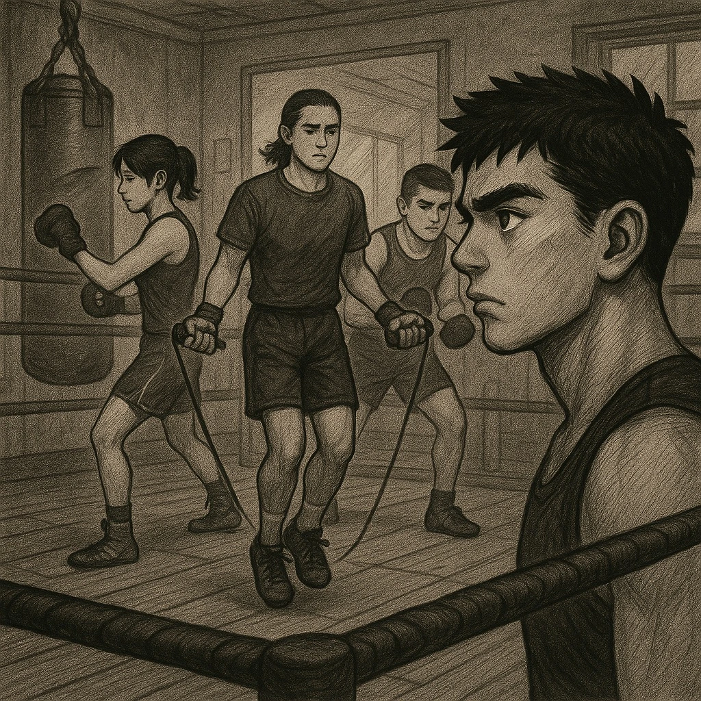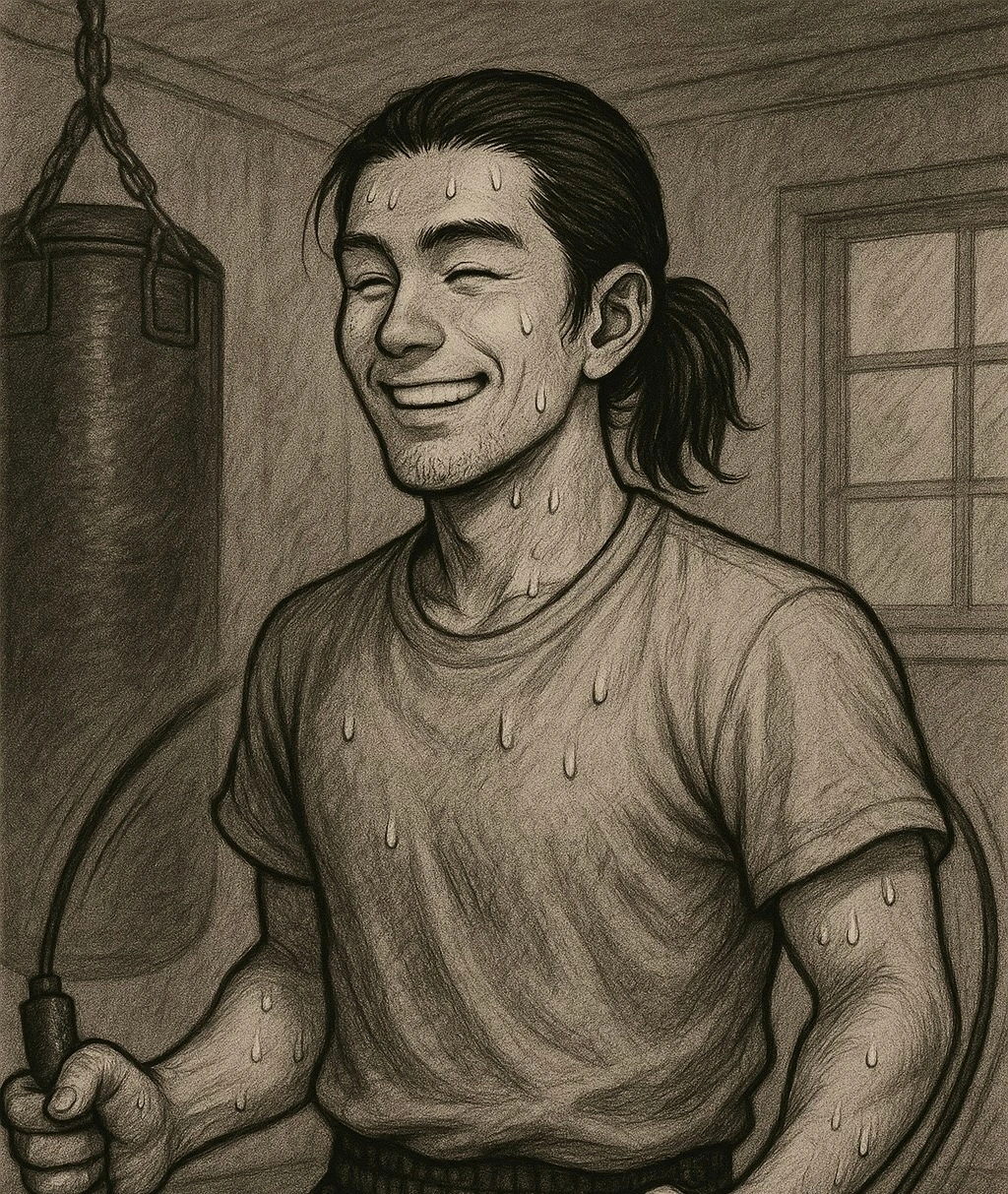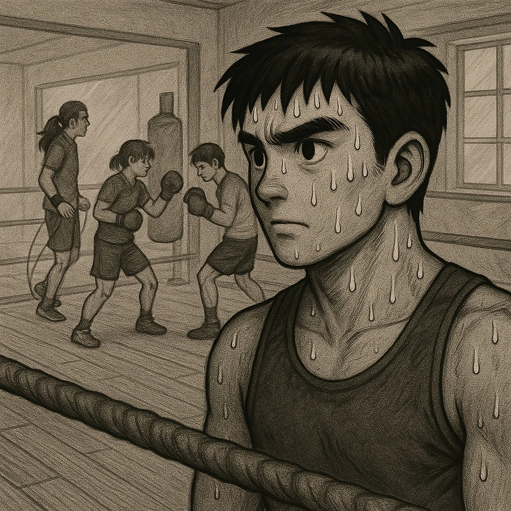 그 땀의 무게가 이 작은 체육관을 또 하나의 도시처럼 숨 쉬게 하고 있었다.