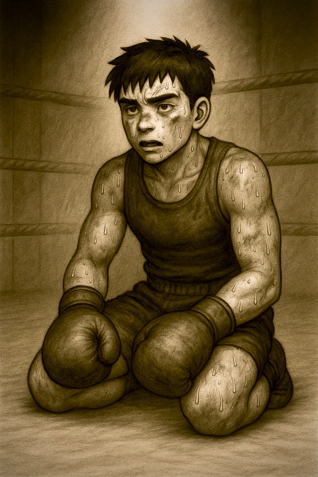 스파링이 끝난 뒤, 링 아래에 주저앉은 바울이.
