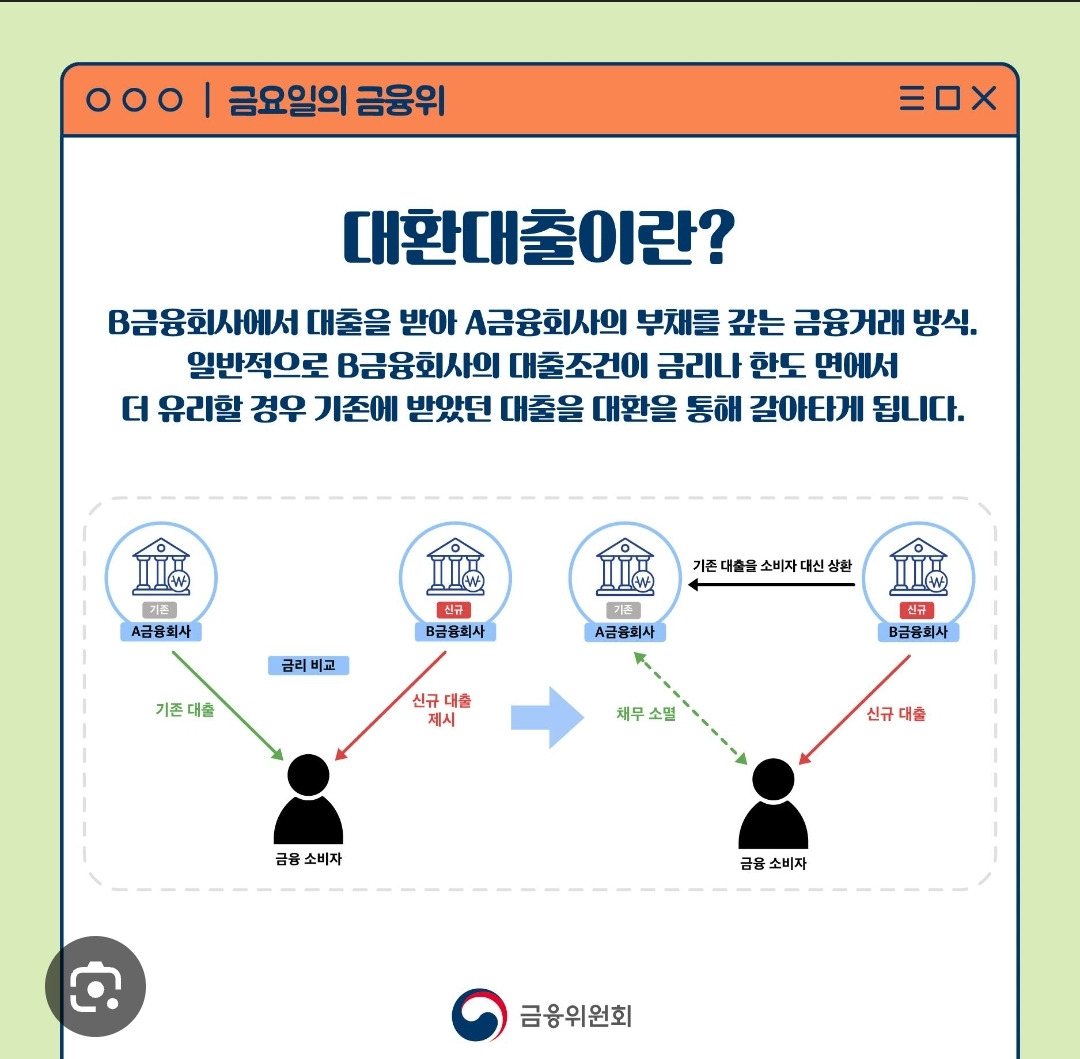 대환대출은 기존에 가지고 있는 여러 건의 대출이나 고금리 대출을 더 낮은 금리의 새로운 대출로 갈아타는 방식을 말한다. 쉽게 말해 비싼 빚을 싼 빚으로 바꾸는 것이다.