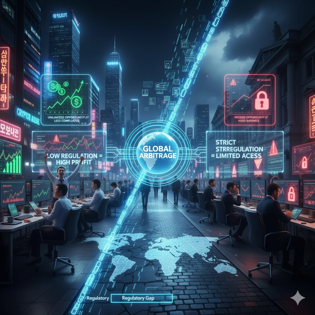 암호화폐는 국경을 가볍게 넘지만 자본은 각국의 법률을 벗어나지 못한다. 이 간극이 바로 글로벌 차익거래의 무대다. 규제는 시장의 질서를 세우고 투자자를 지키지만, 속도와 방향이 지역마다 다르다. 그 차이가 가격, 유동성, 과세, 접근성의 비대칭을 만들고, 이는 곧 기회이자 위험으로 변한다.