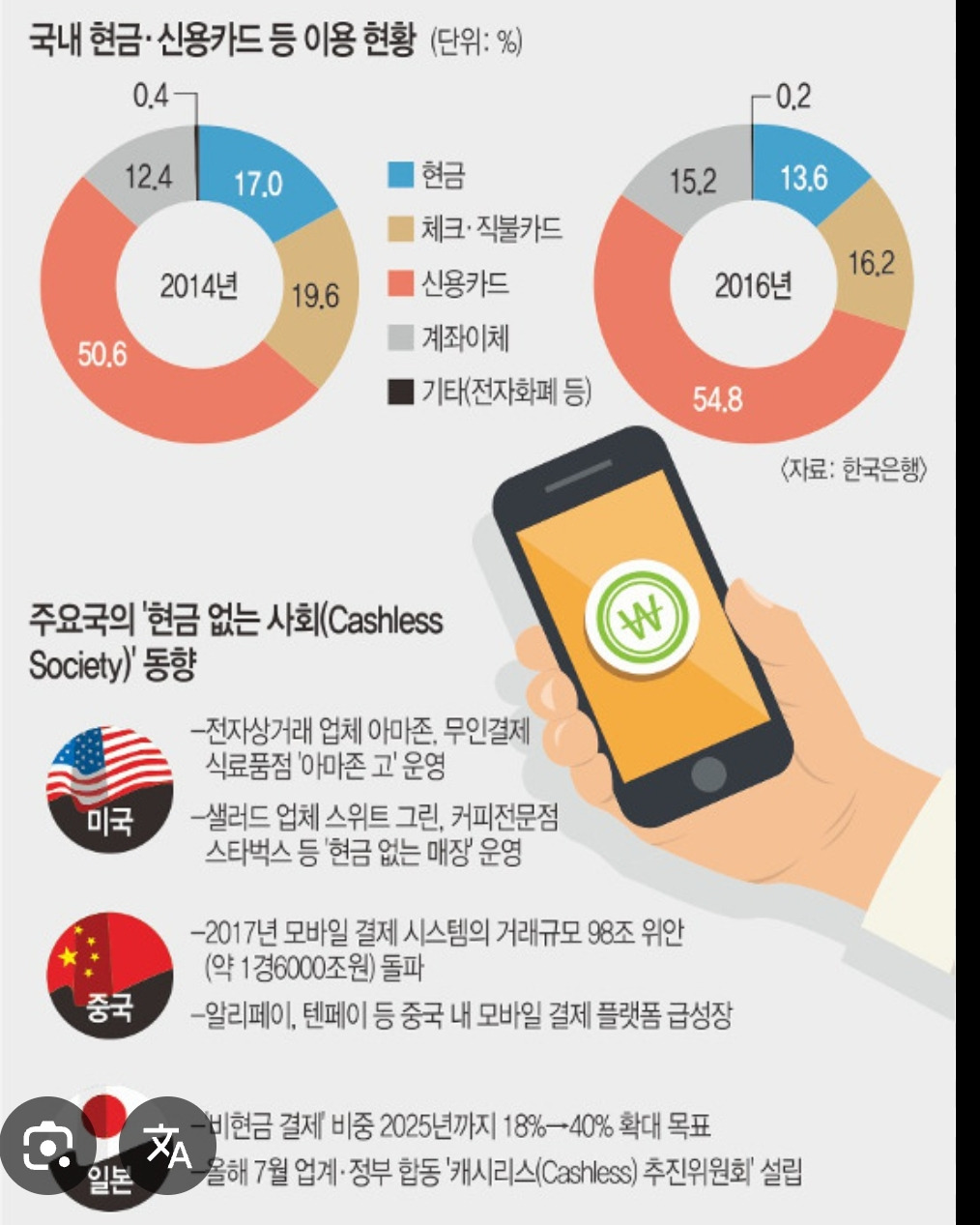 - ‘현금 없는’ 환경 확대에 따른 고객 제한, 매출감소의 위험성이 영세·노인상권, 전통시장 등에서 실질적인 위협으로 대두되고 있습니다.