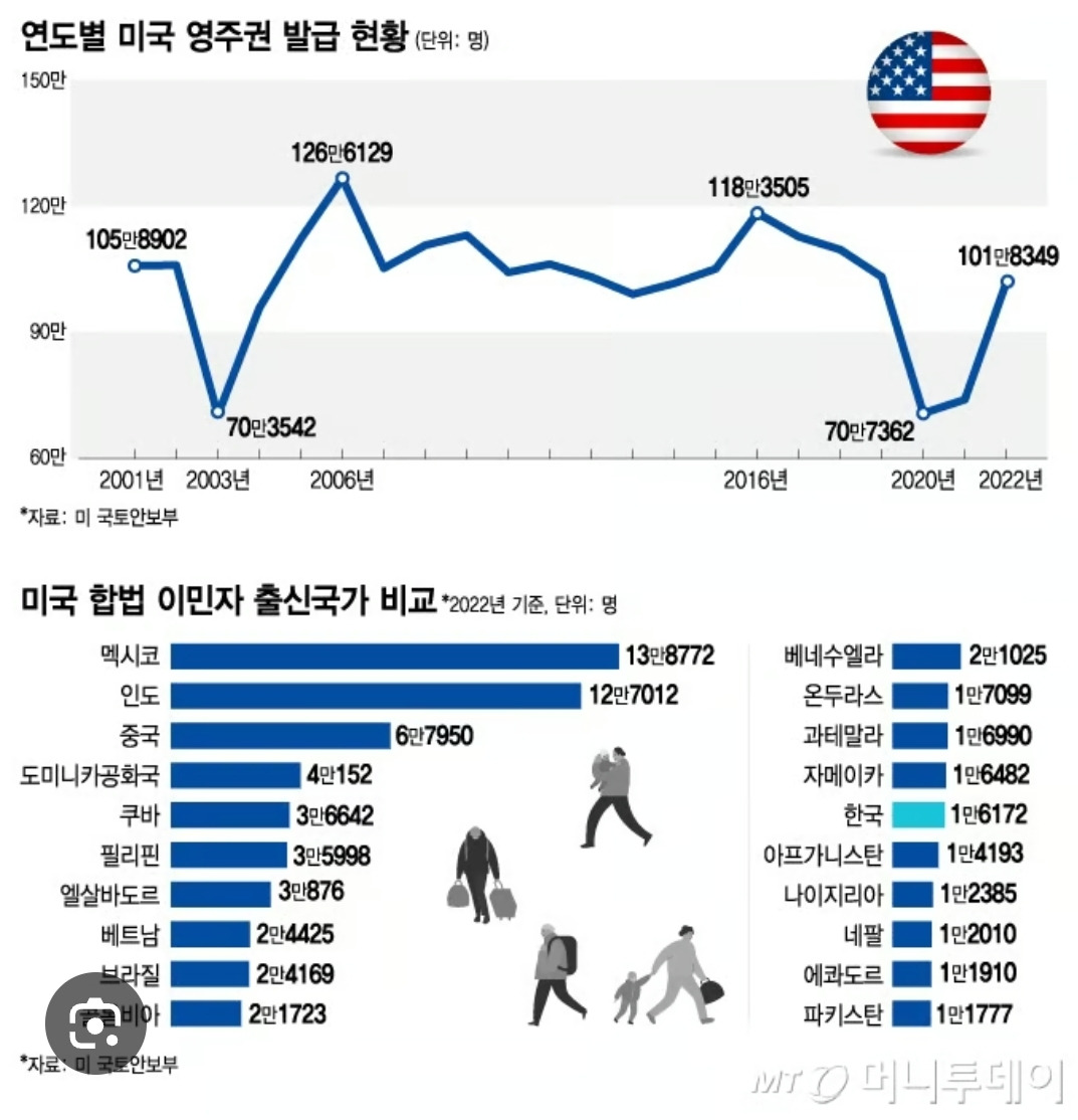최근 몇 년간 한국인의 미국 이민이 급증하고 있다는 소식이 자주 보도되고 있습니다. 특히 영주권(그린카드) 취득 건수와 고급 인재 유출이 두드러지며, 이는 경제·교육·정치적 요인과 맞물려 있습니다. 아래에서 최근 데이터와 추세를 정리하겠습니다. (데이터는 미국 국토안보부(DHS), OECD, Pew Research Center 등 공신력 있는 출처 기반)