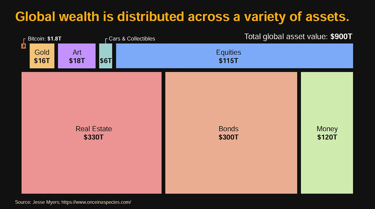 글로벌 자산 시장의 분배 현황을 살펴보면 비트코인의 현재 위치를 이해할 수 있습니다.