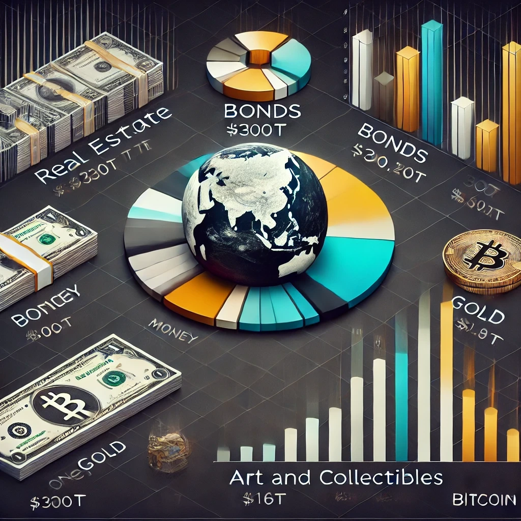 전 세계 자산 시장의 규모는 약 900조 달러에 달합니다. 이 거대한 시장은 부동산, 채권, 현금, 주식, 금, 예술품 등으로 구성되어 있으며, 각 자산군은 독자적인 특성과 안정성을 바탕으로 투자자들의 관심을 끌어왔습니다. 하지만, 이제 비트코인이라는 새로운 자산군이 등장하며 글로벌 자산 시장에 변화를 불러오고 있습니다.