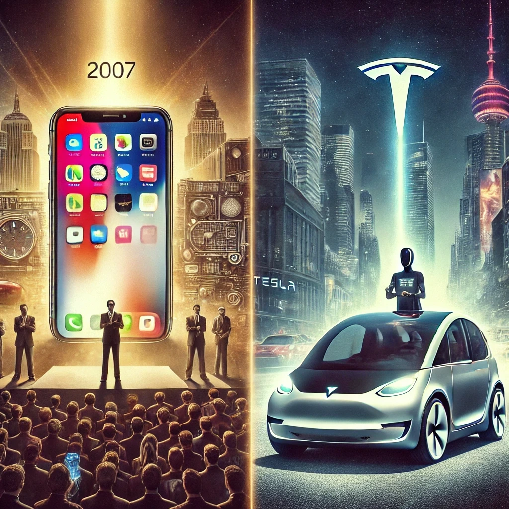스티브 잡스가 2007년 아이폰을 세상에 선보인 순간, 전 세계는 새로운 기술 혁신의 시대를 맞이했습니다. 이제 2025년, 일론 머스크의 테슬라 로보택시 서비스 출시는 또 한 번의 혁명적인 전환점을 예고하고 있습니다. 두 사건의 공통점과 차이점을 분석하며, 그 사회적, 경제적 영향을 조망하겠습니다.